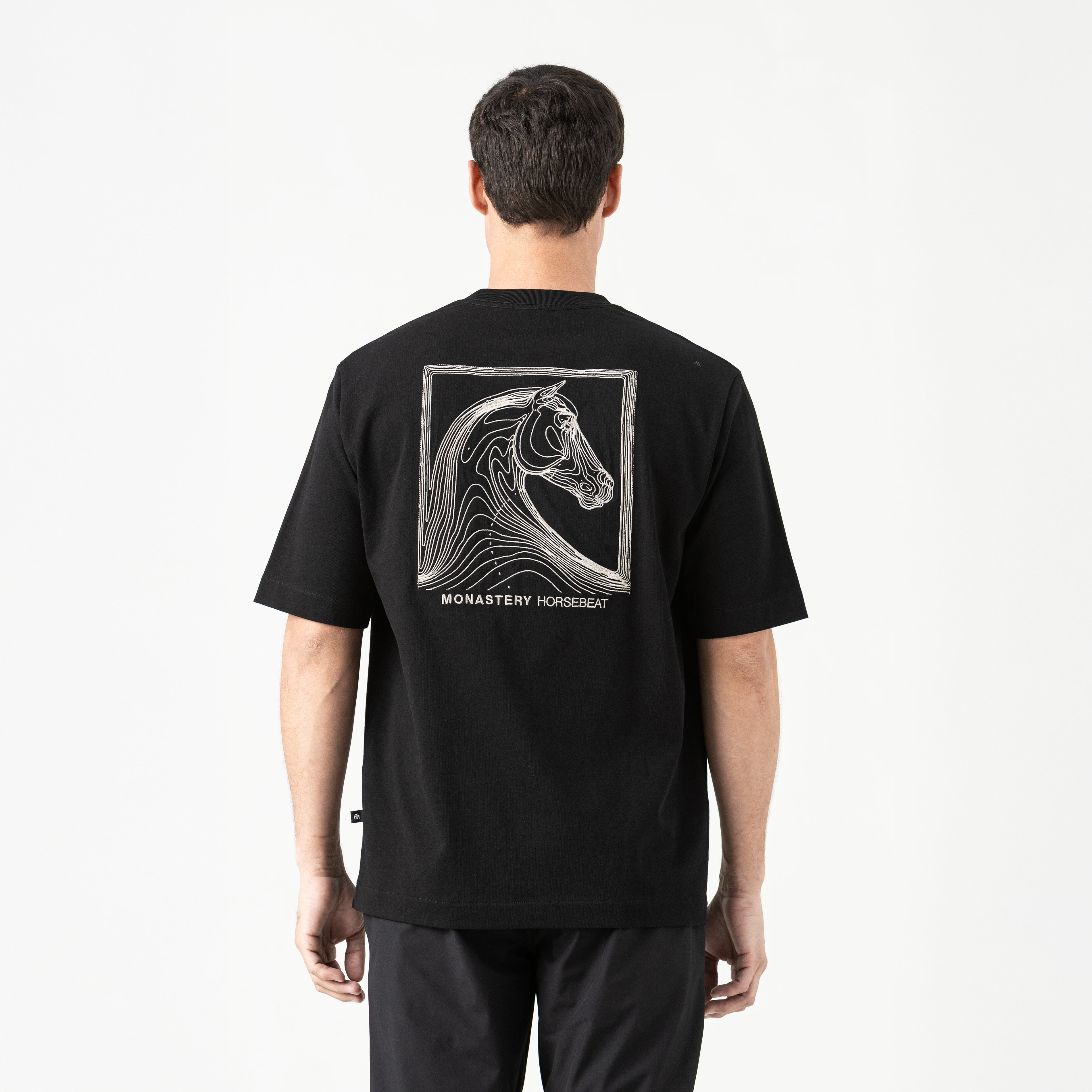Oversized camiseta, es una pieza que habla de fuerza contenida y movimiento interno. Confeccionada en tela Monastery 2, esta camiseta de silueta oversized ofrece cuerpo, presencia y una estructura pulida que se adapta al lenguaje contemporáneo del lujo masculino. En el frente un aplique en PU un elemento técnico que interrumpe la textura natural del algodón. En la espalda, un bordado que se convierte en símbolo de libertad, dominio y elegancia contenida, ejecutado con trazos definidos y carácter escultórico.El cuello en rib de 2.5 cm cierra la prenda con un equilibrio sobrio. 7C es para el hombre que habita la contradicción entre lo salvaje y lo controlado.