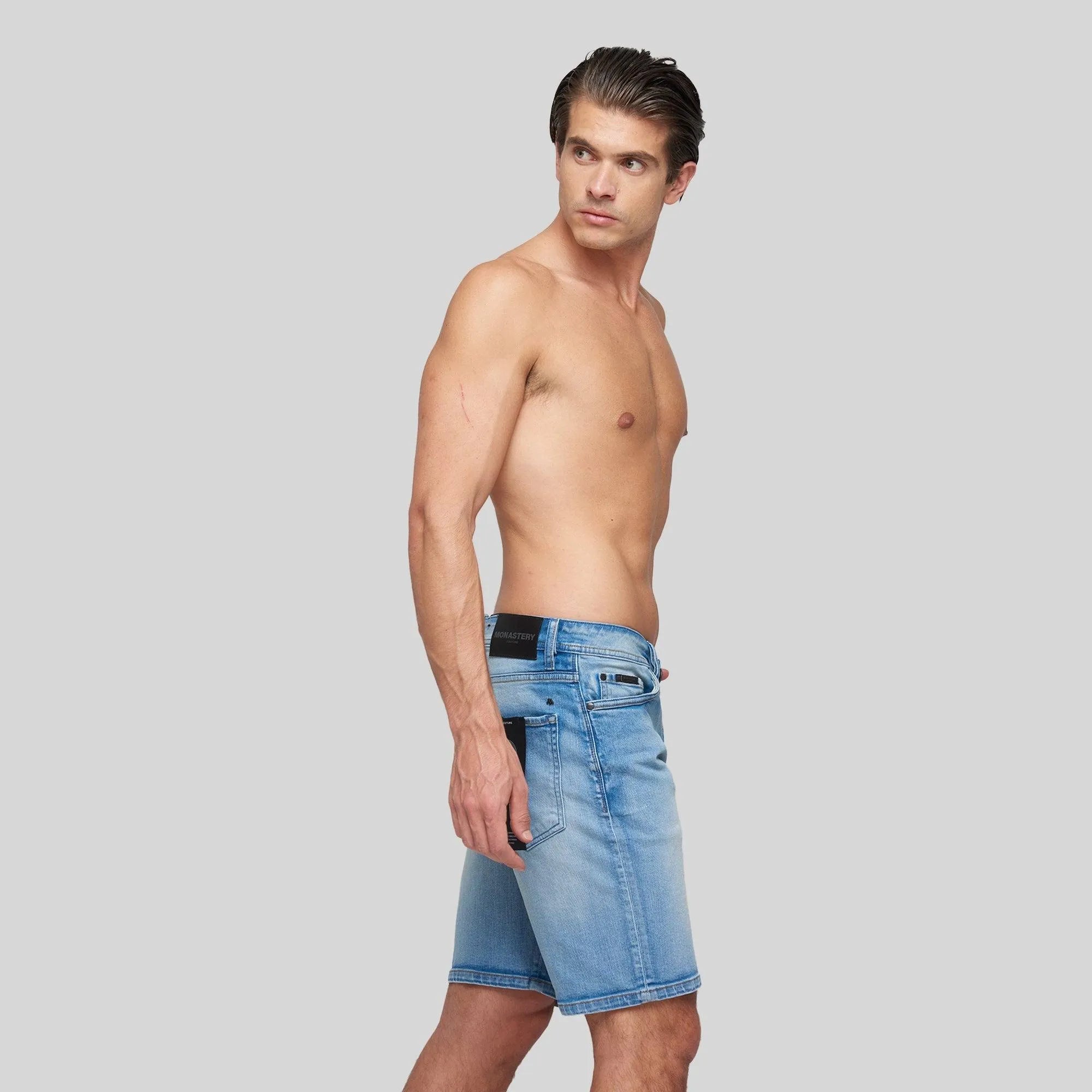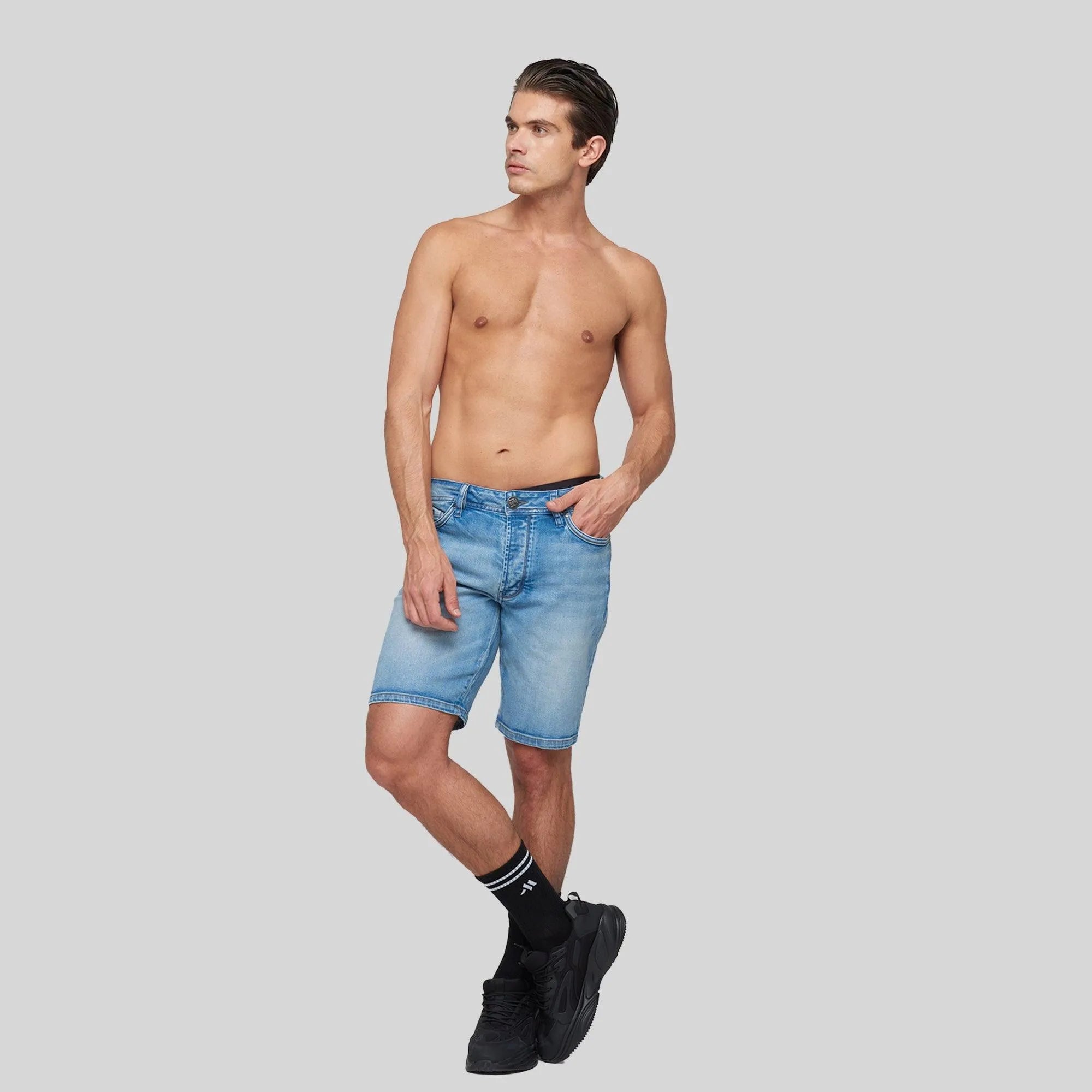 Nuestra bermuda Alasia masculina, con un estilo regular de 5 bolsillos y el fit MST, ofrece un ajuste medio, horma cómoda y cintura media con pretina ancha y recta. Elaborada en denim azul con acabados y lavados especiales, esta bermuda está compuesta por un alto porcentaje de algodón, asegurando una excelente calidad y un ajuste perfecto.