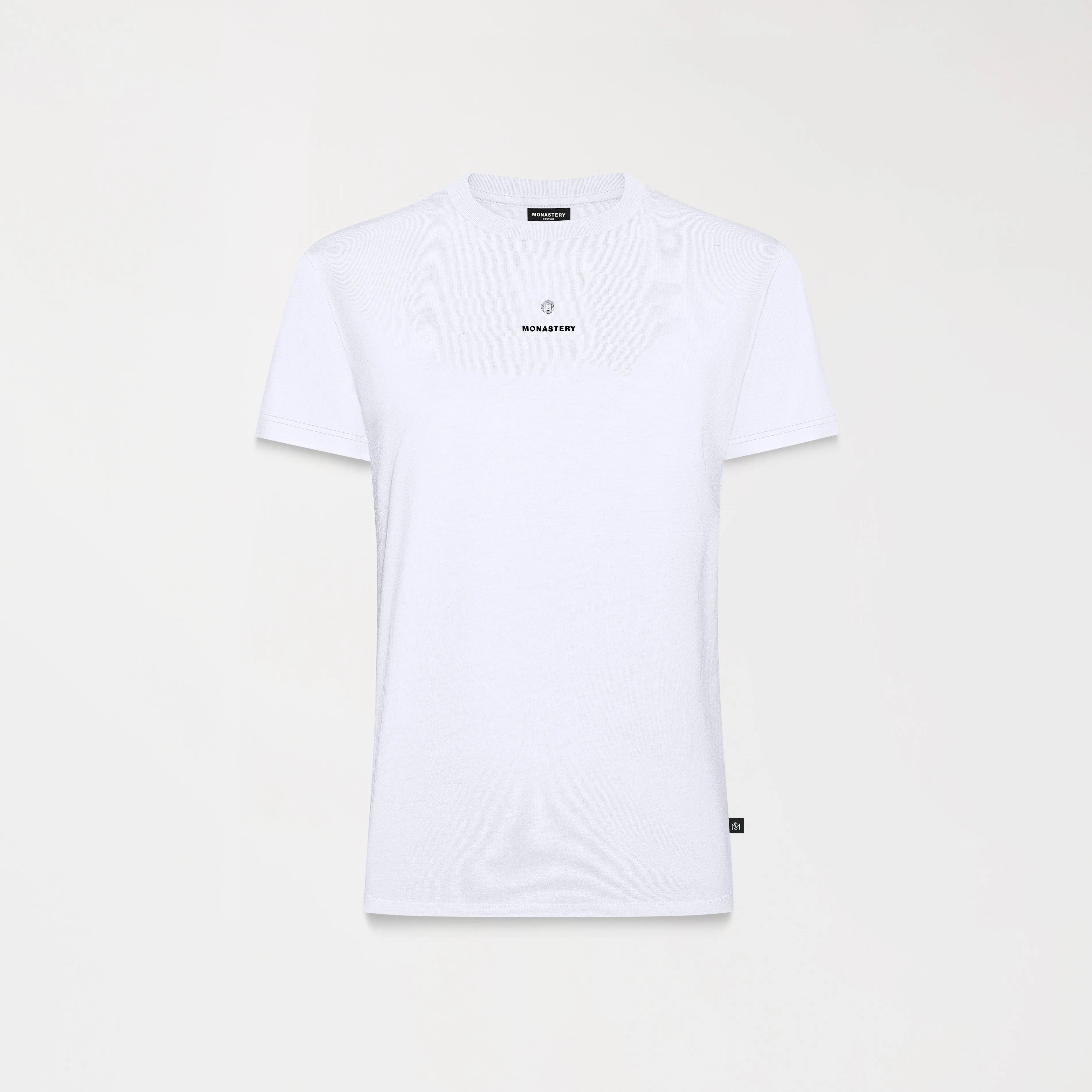 Playera para mujer en silueta pequeña elaborada en nuestra base textil mst oporto premium cotton y elastano para mayor comodidad y frescura. La referencia bryony está acompañada de una fina placa metálica contramarcada con el logo Tsm en color plata brillante y un texto Monastery estampado plano con detalles que le dan un toque distintivo y moderno.