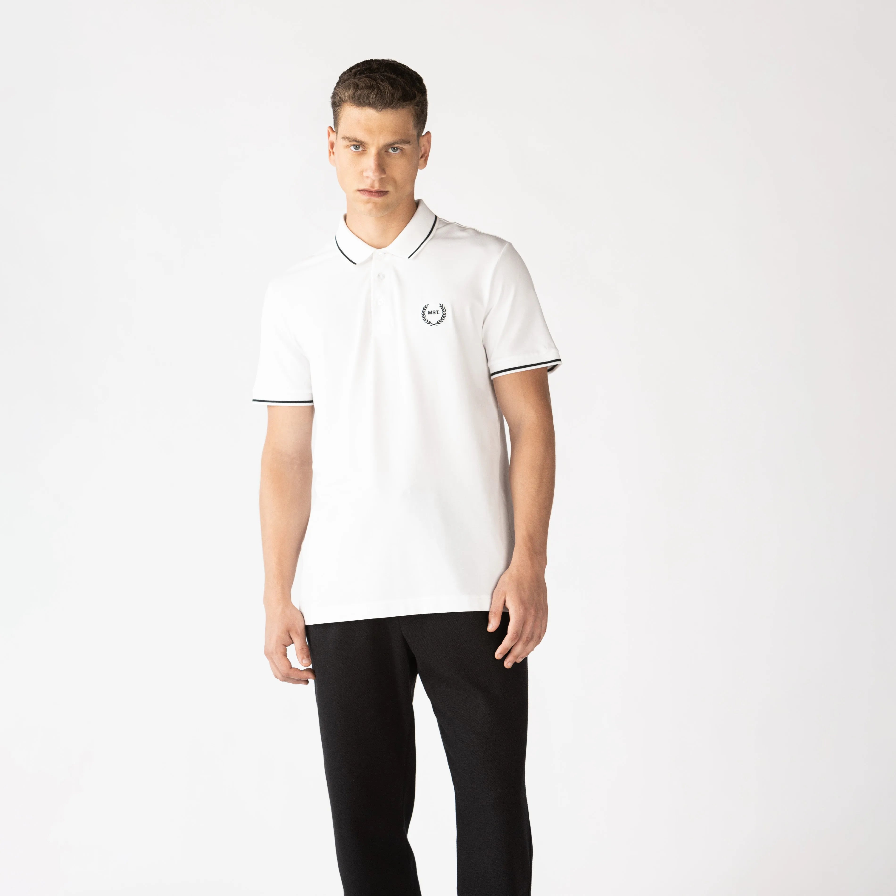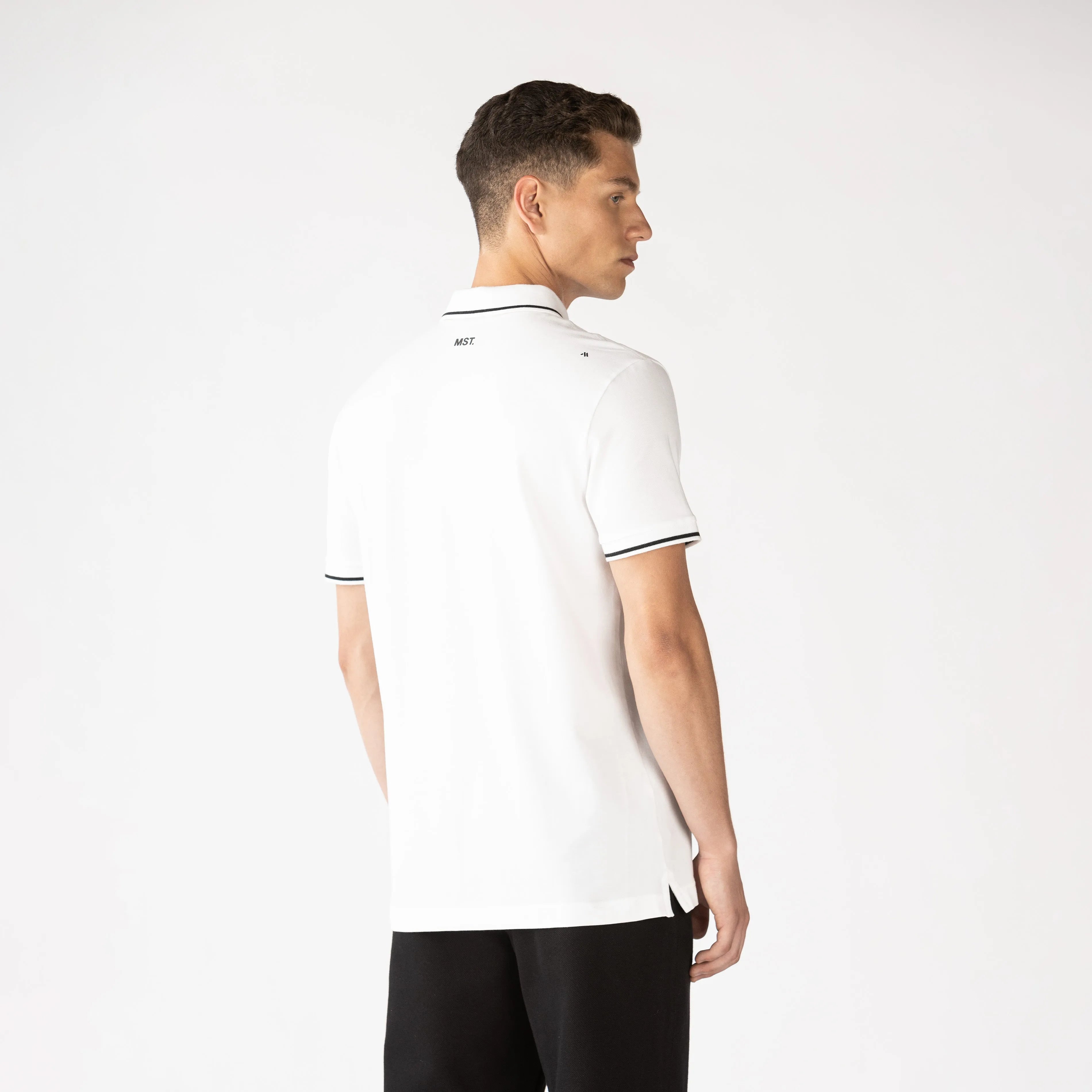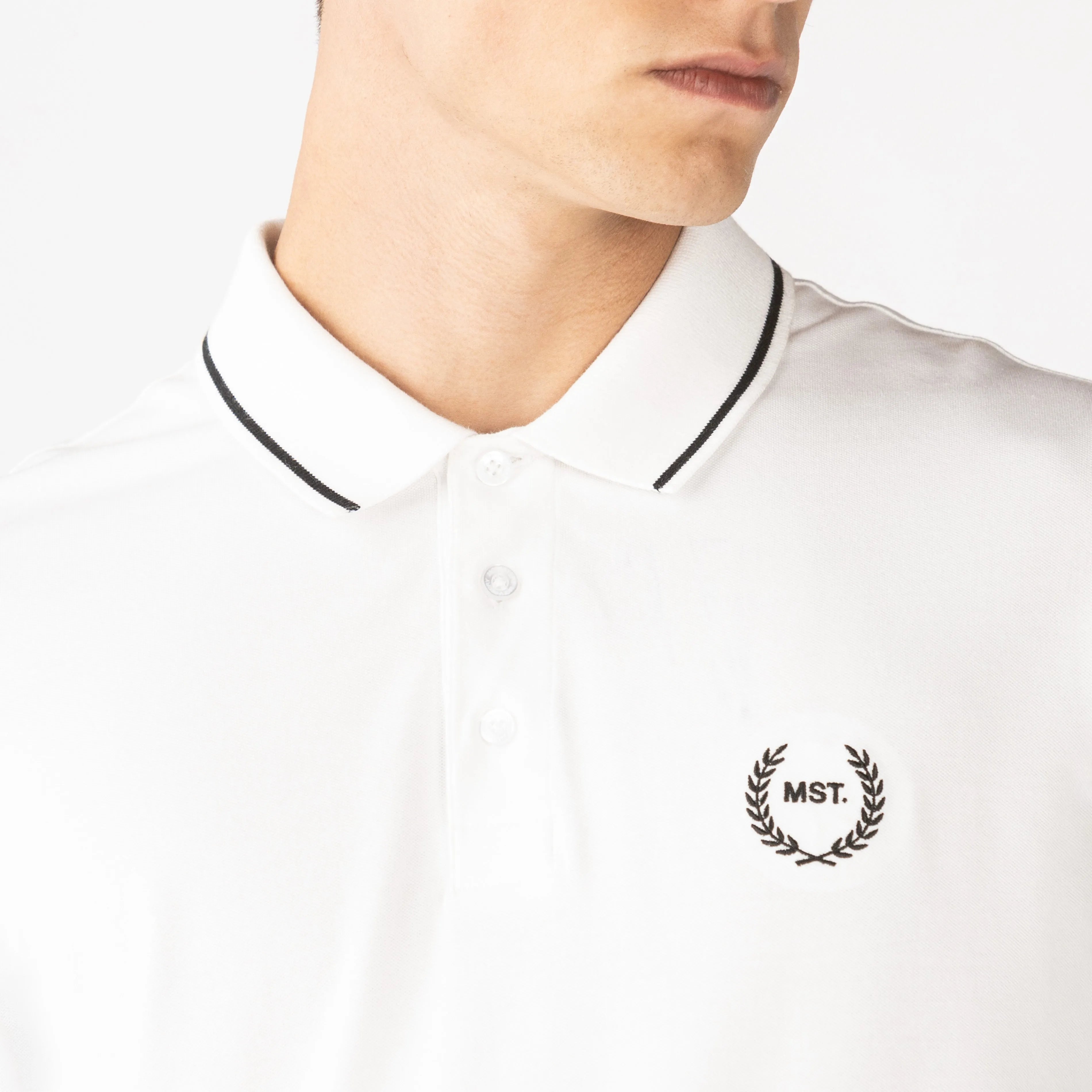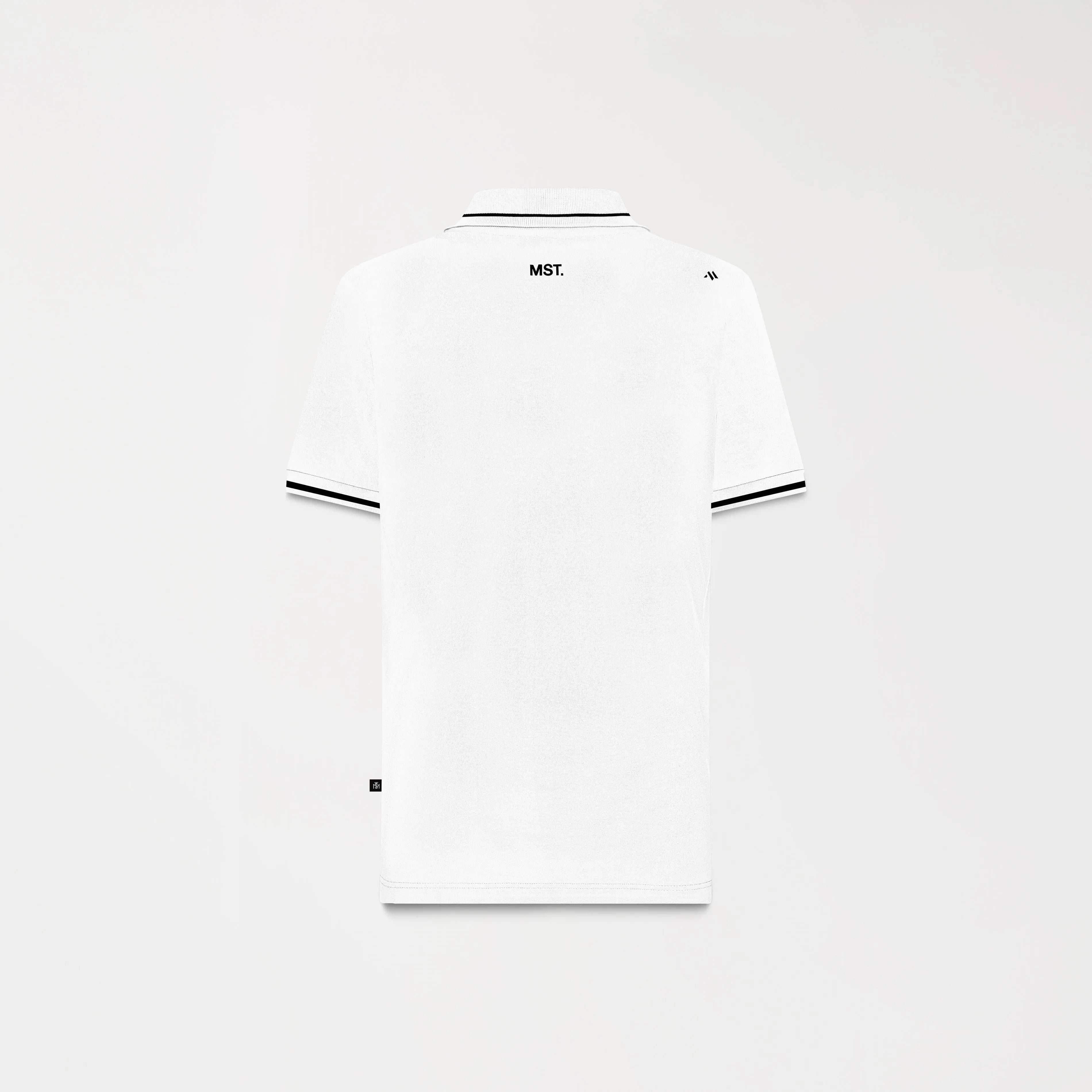 Playera tipo polo blanca para hombre confeccionada en pique pima de alta calidad exclusivo para Monastery, esta polo shirt destaca por su arte bordado ubicado en punto corazón, que le da un toque distintivo y elegante. Presenta un cuello y puños tejidos que añaden comodidad y un estilo clásico. La parte posterior cuenta con un diseño clásico de artes insignia en alta densidad, ofreciendo un acabado sofisticado. Perfecta para un look casual y refinado.
