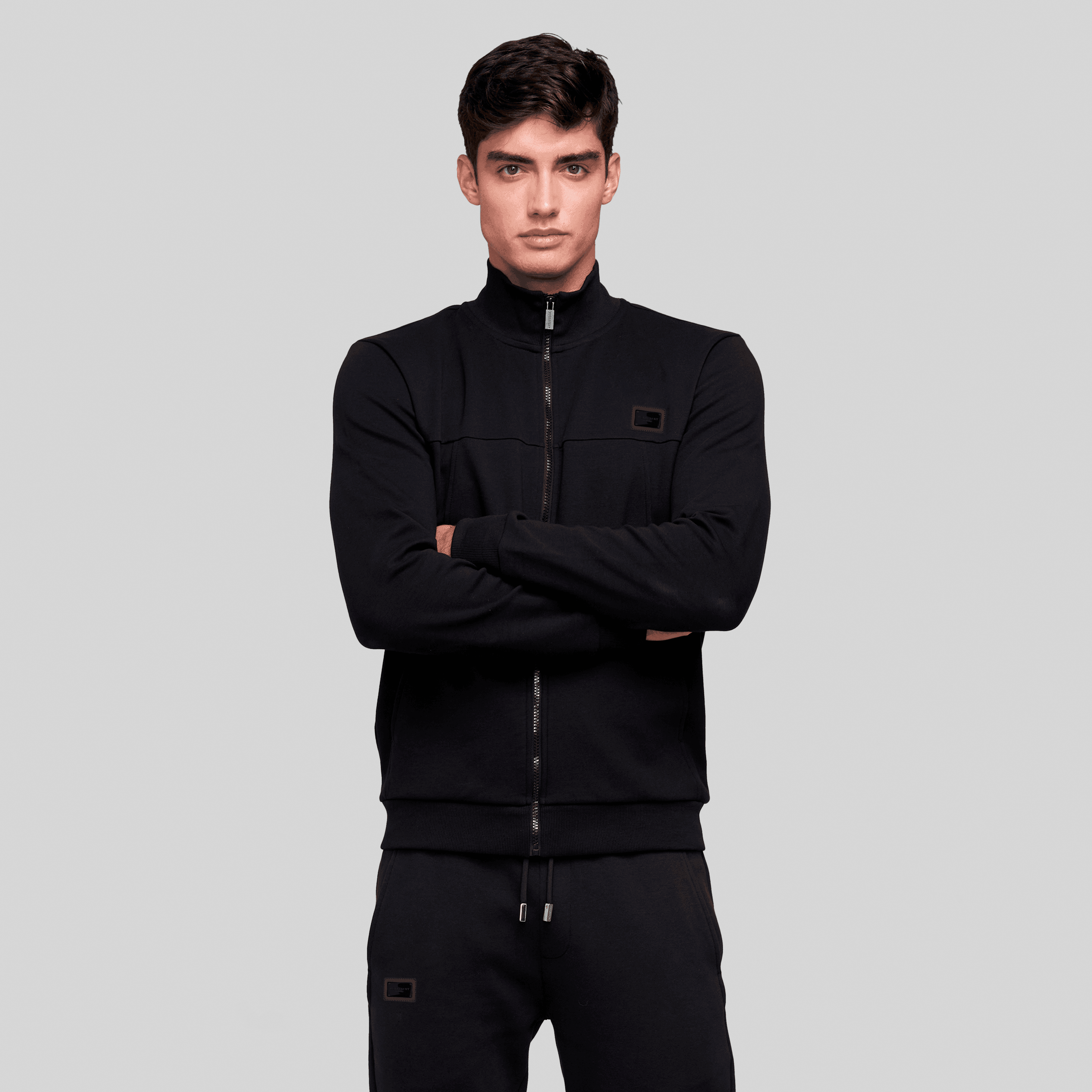 Chaqueta deportivo, producido en tejido de punto Double face. Este conjunto presenta placa metálica Monastery Couture y líneas laterales en contraste, agregando un toque distintivo a la prenda. Los puños, cuello, fajón y pretina están elaborados en rib y van en el mismo color de los artes, lo que añade un estilo único y elegante.