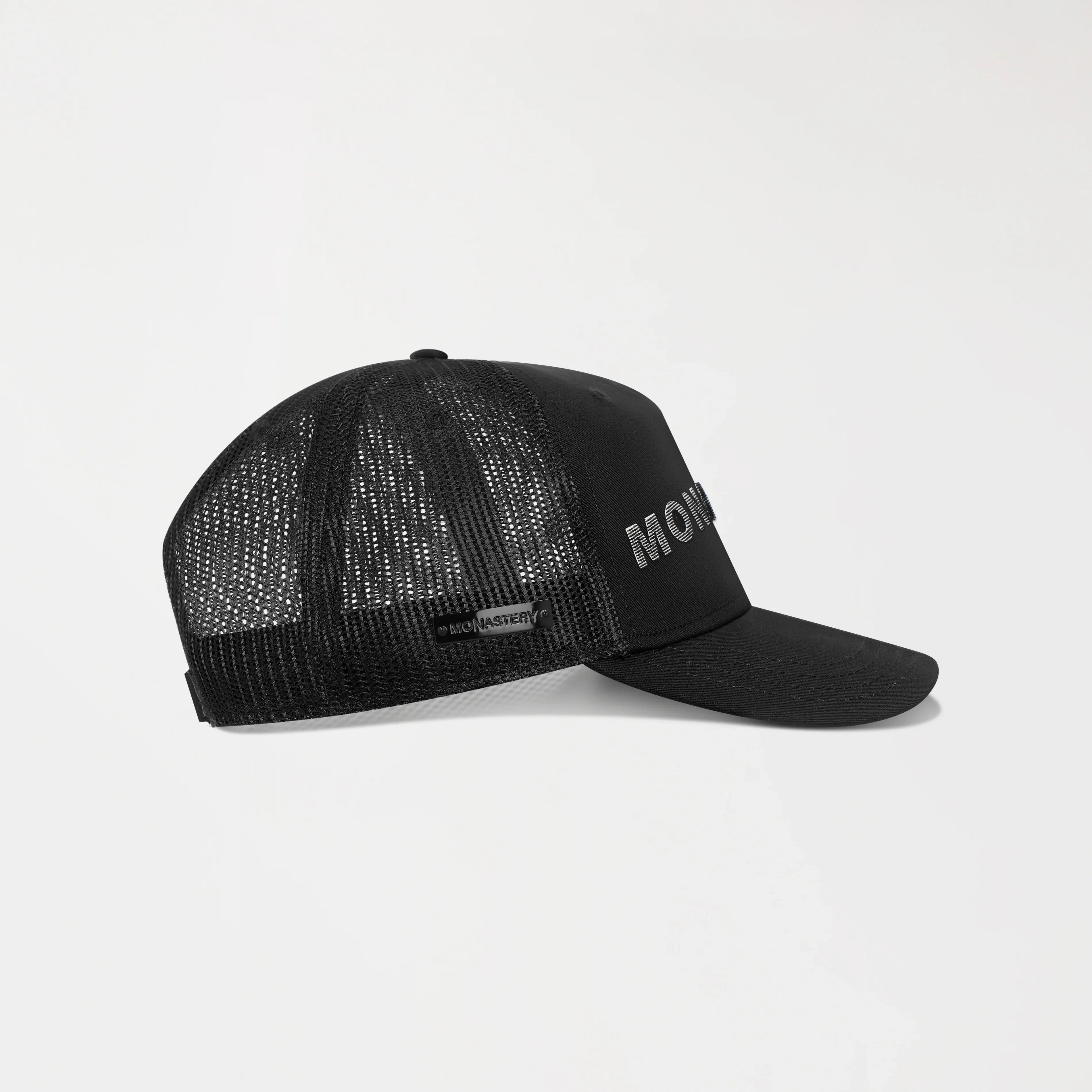 Gorra elaborada en algodón/ poliéster con una innovadora técnica en la parte frontal, en su panel lateral presenta aplique metálico en ónix que hace juego a la malla en color negro y en su posterior sistema de cierre en cuero bovino de la mas alta calidad, esta pieza le dará un toque final y realzara todos tus looks siendo perfecta para combinarse con otras creaciones de la colección.