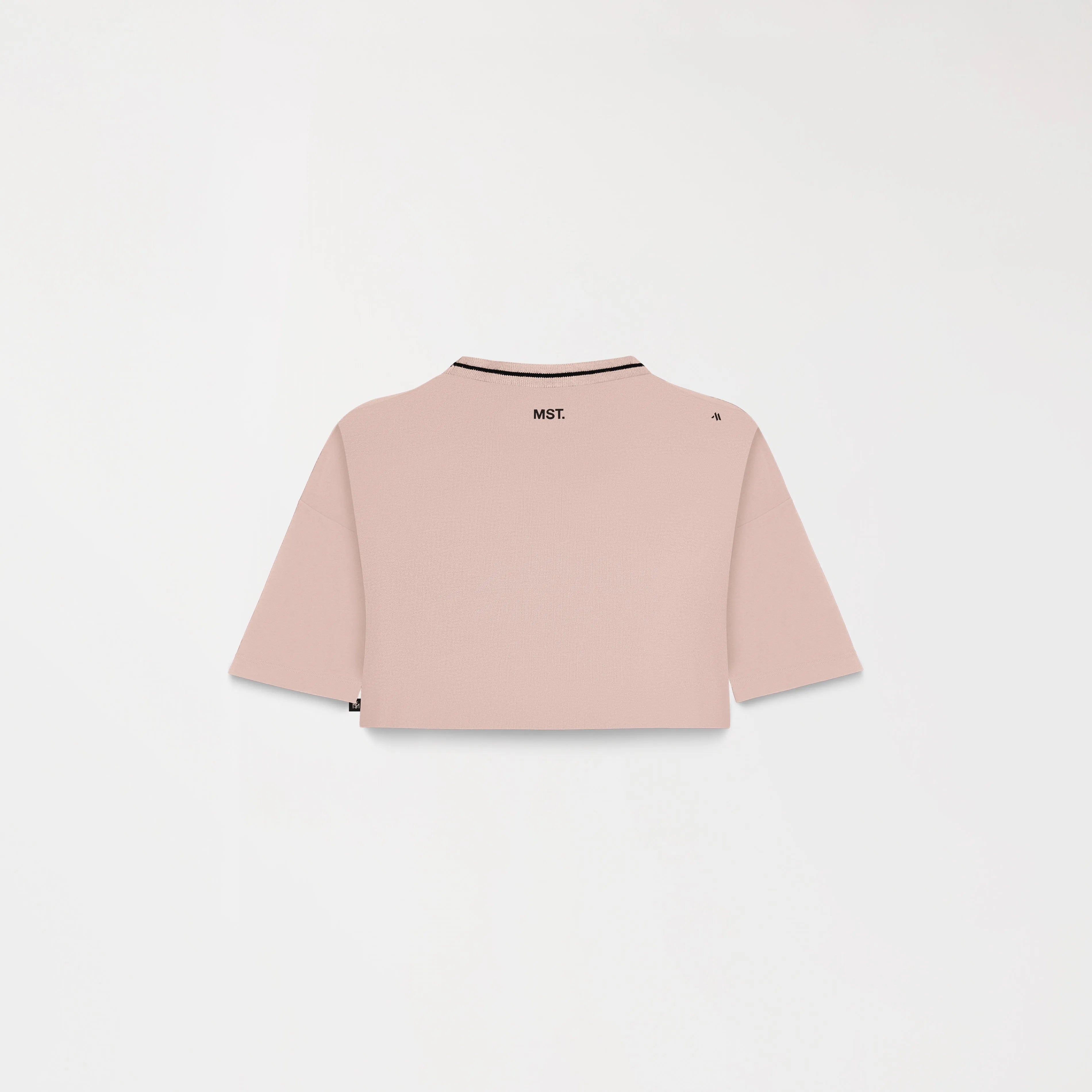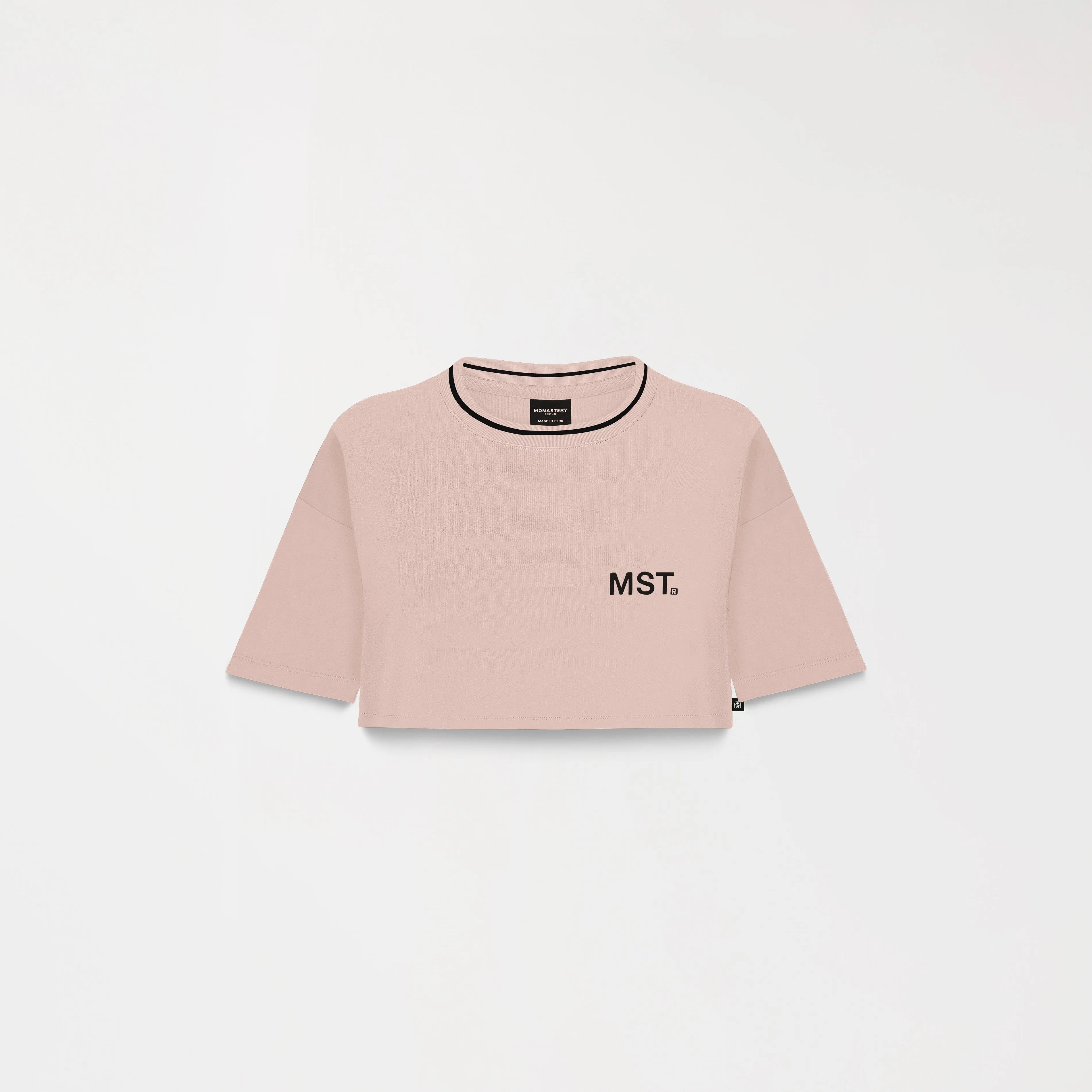 Crop top femenino en algodón 100% exclusivo para Monastery, elaborada en silueta pequeña, Elden presenta un bordado en punto corazón del icónico logo MST, el cual añade un relevante toque de la identidad de marca, esta referencia tiene cuello en tejido rectilíneo la cual es una opción versátil, perfecta para combinar con una variedad de atuendos.