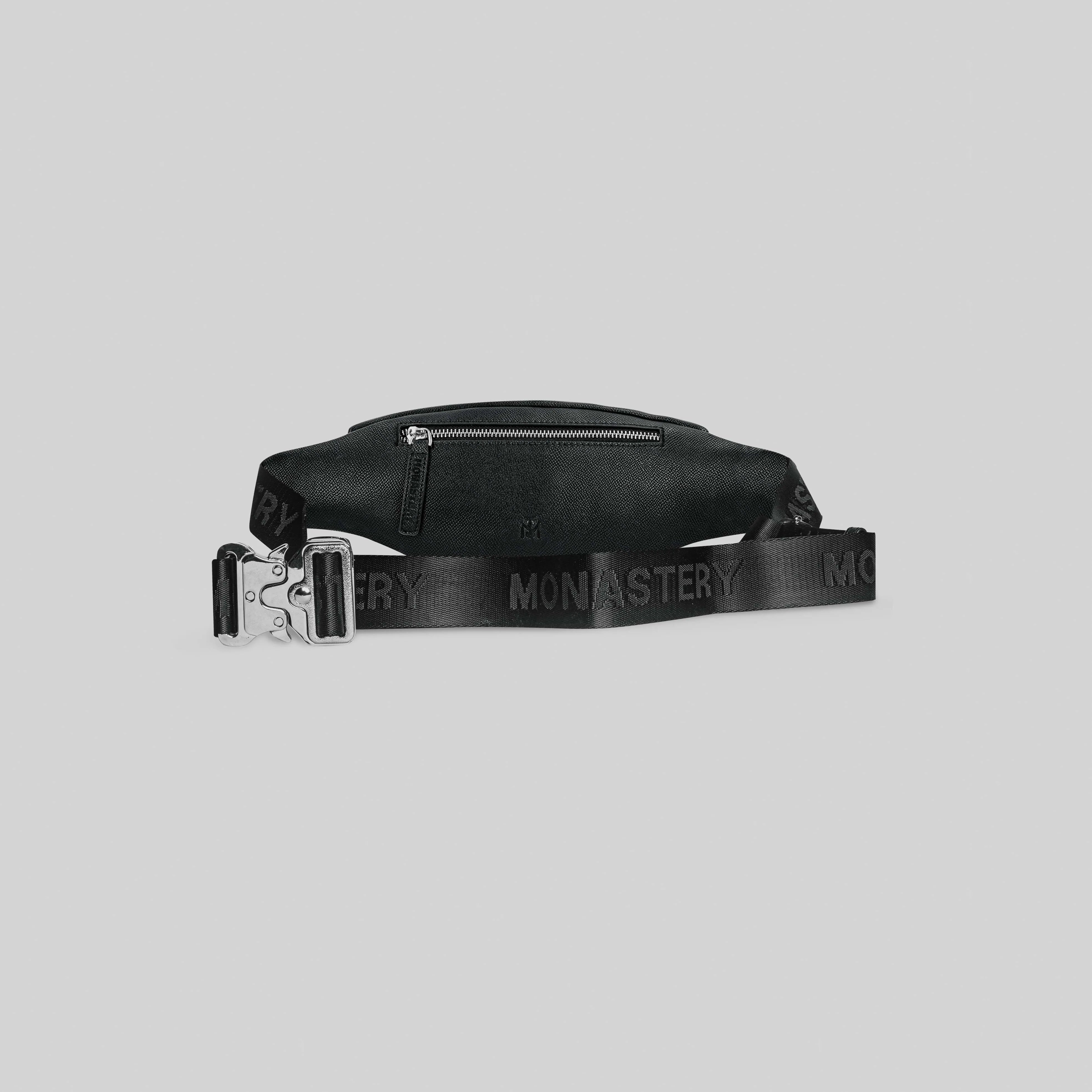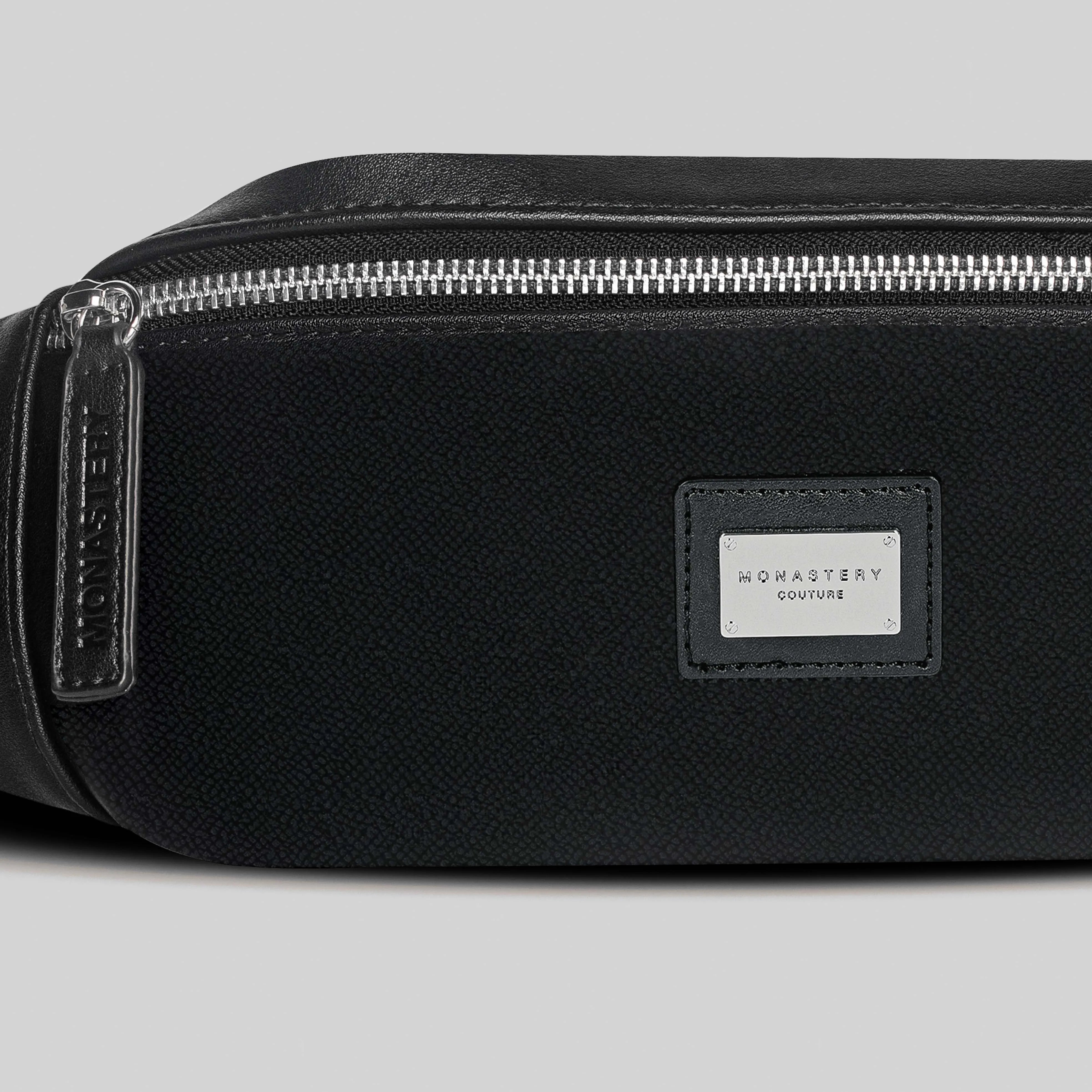 El Fanny pack FIURA está elaborado en PU, con una placa en el frente marcada “Monastery”. Dispone de un bolsillo frontal y uno posterior para un acceso conveniente, además de pullers en PU contramarcados, ofreciendo una solución práctica para mantener tus pertenencias organizadas.