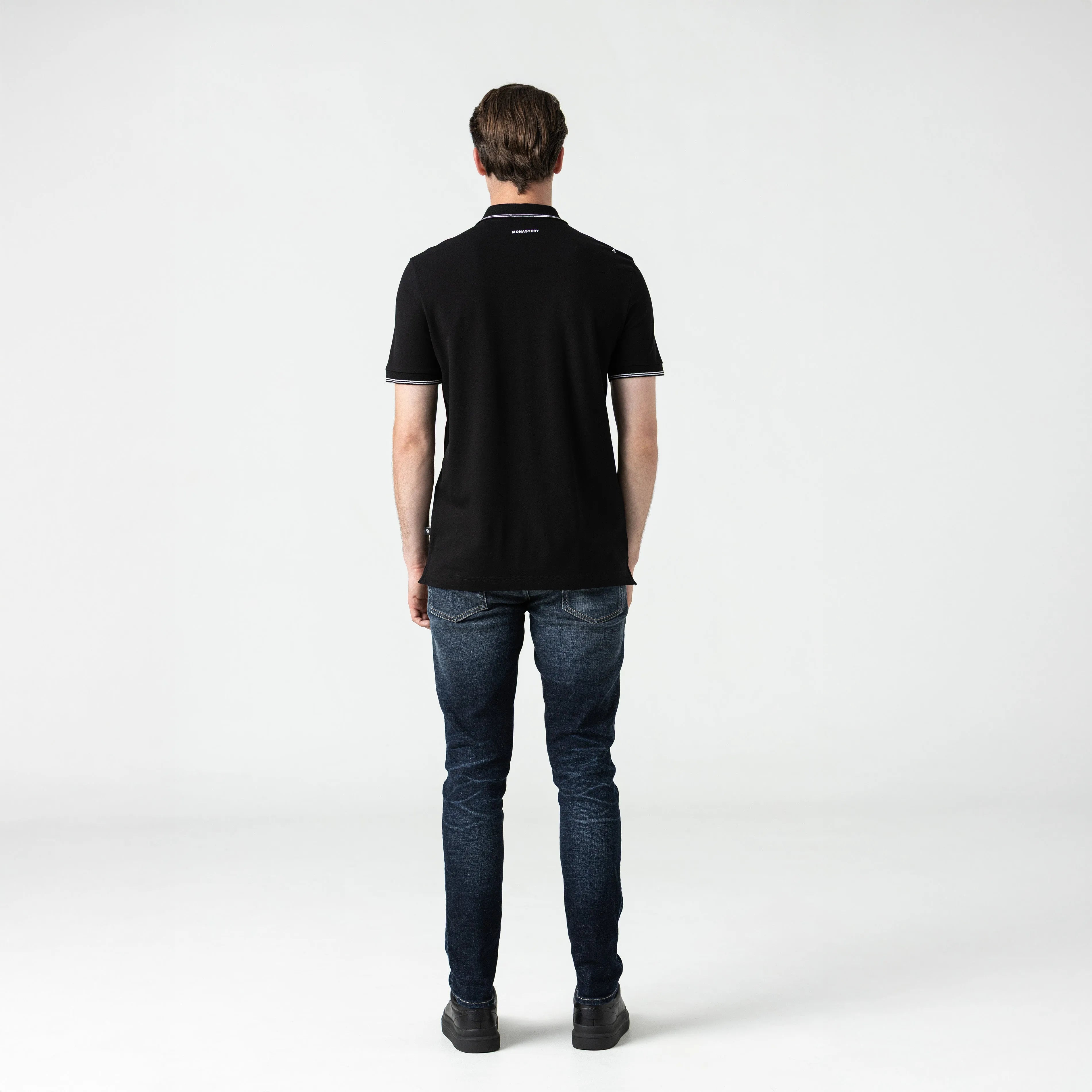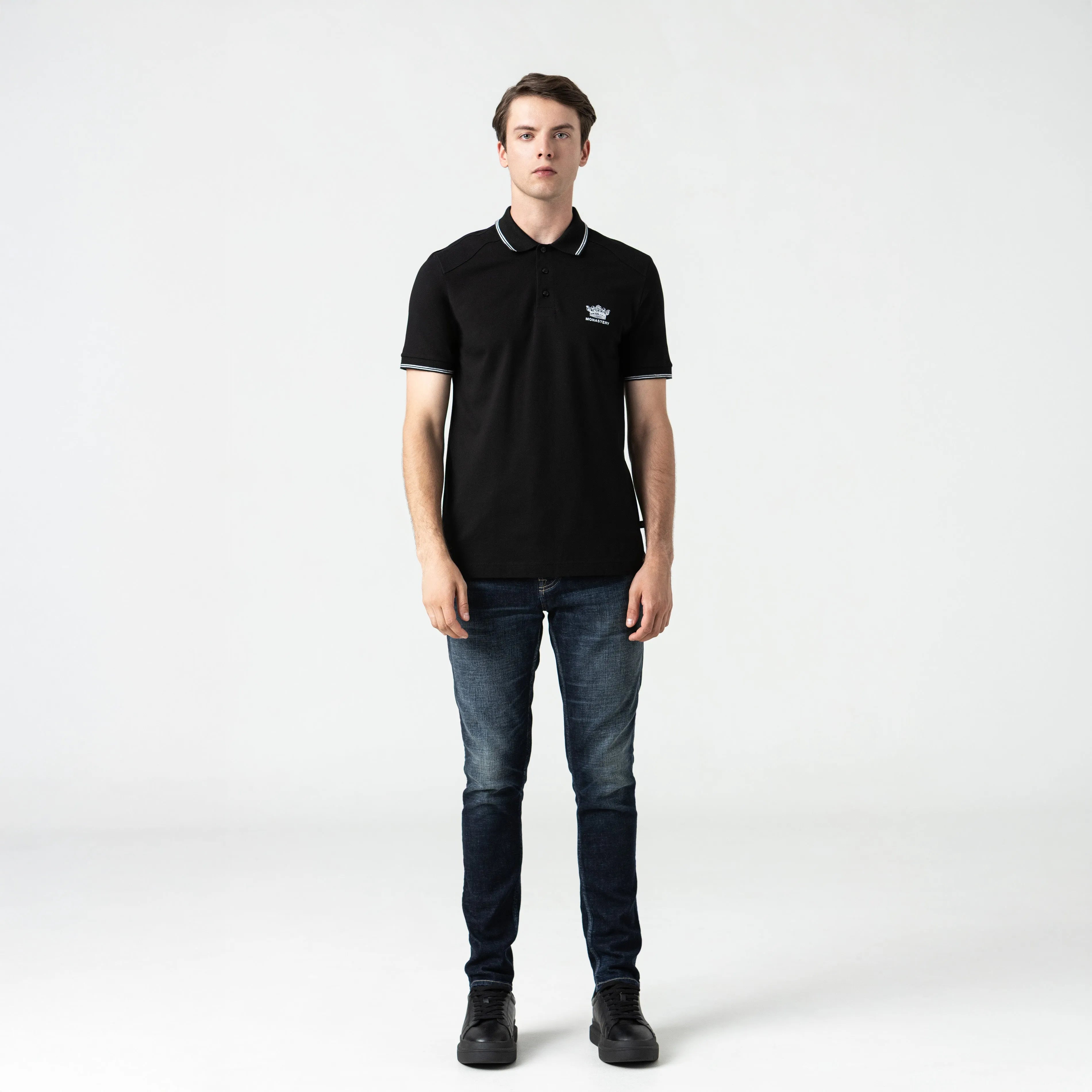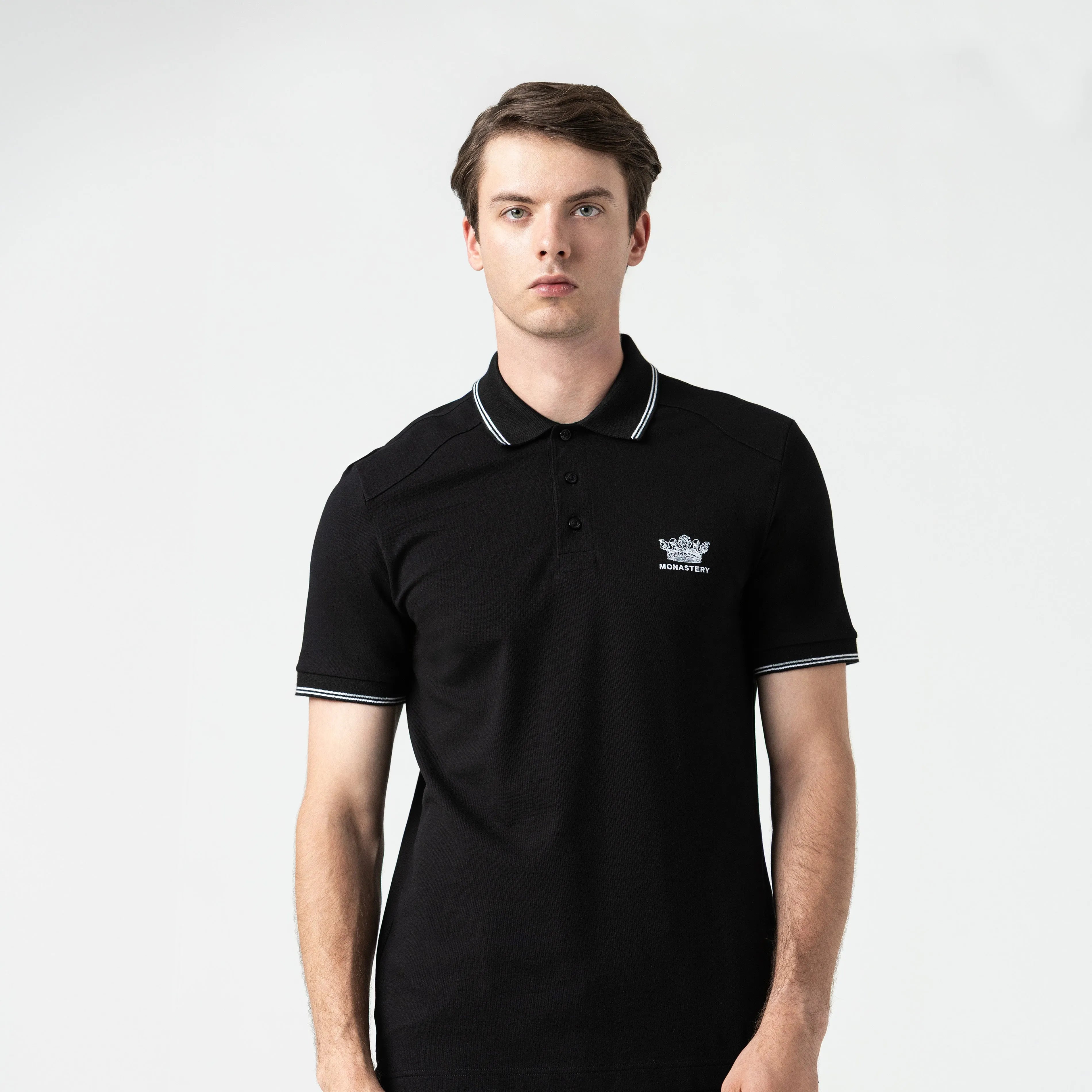 Playera tipo polo masculina, elaborada en algodón 100% pima peruano exclusivo para la marca. Franz es una referencia fresca y cómoda, con una silueta clásica y elegante, presenta un diseño renovado de almilla en hombros, cuello y puños en tejido rectilíneo con líneas en contraste, hechos especialmente para ésta referencia, en frente tiene nuestro logo Monastery y una novedosa corona The King bordada en contraste y logos insignia en espalda en alta densidad. Convirtiendo este artículo ideal para lucir en cualquier ocasión.