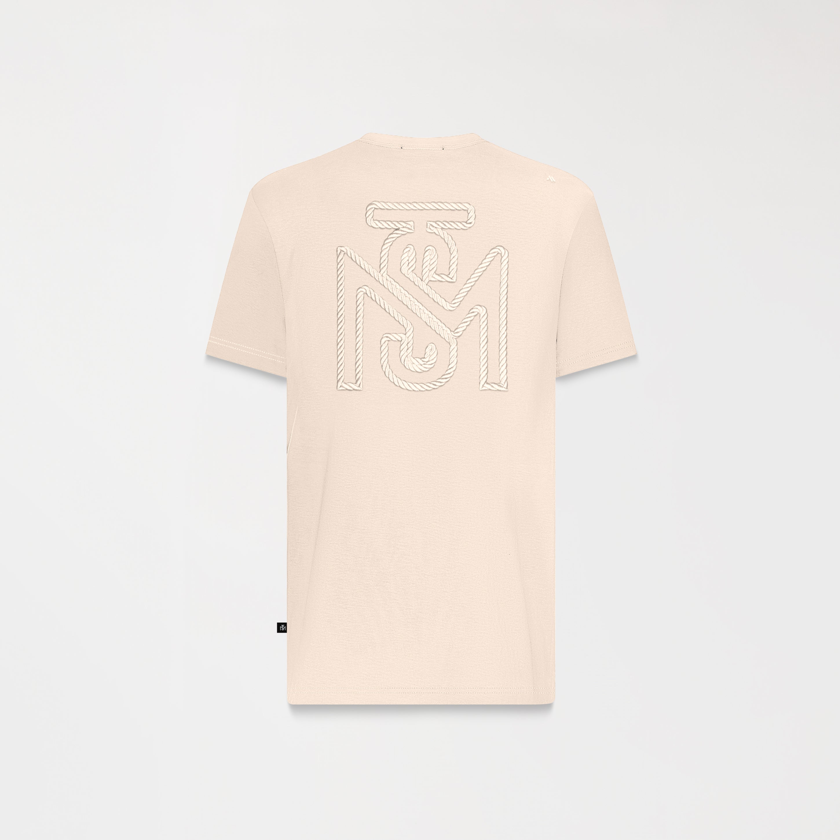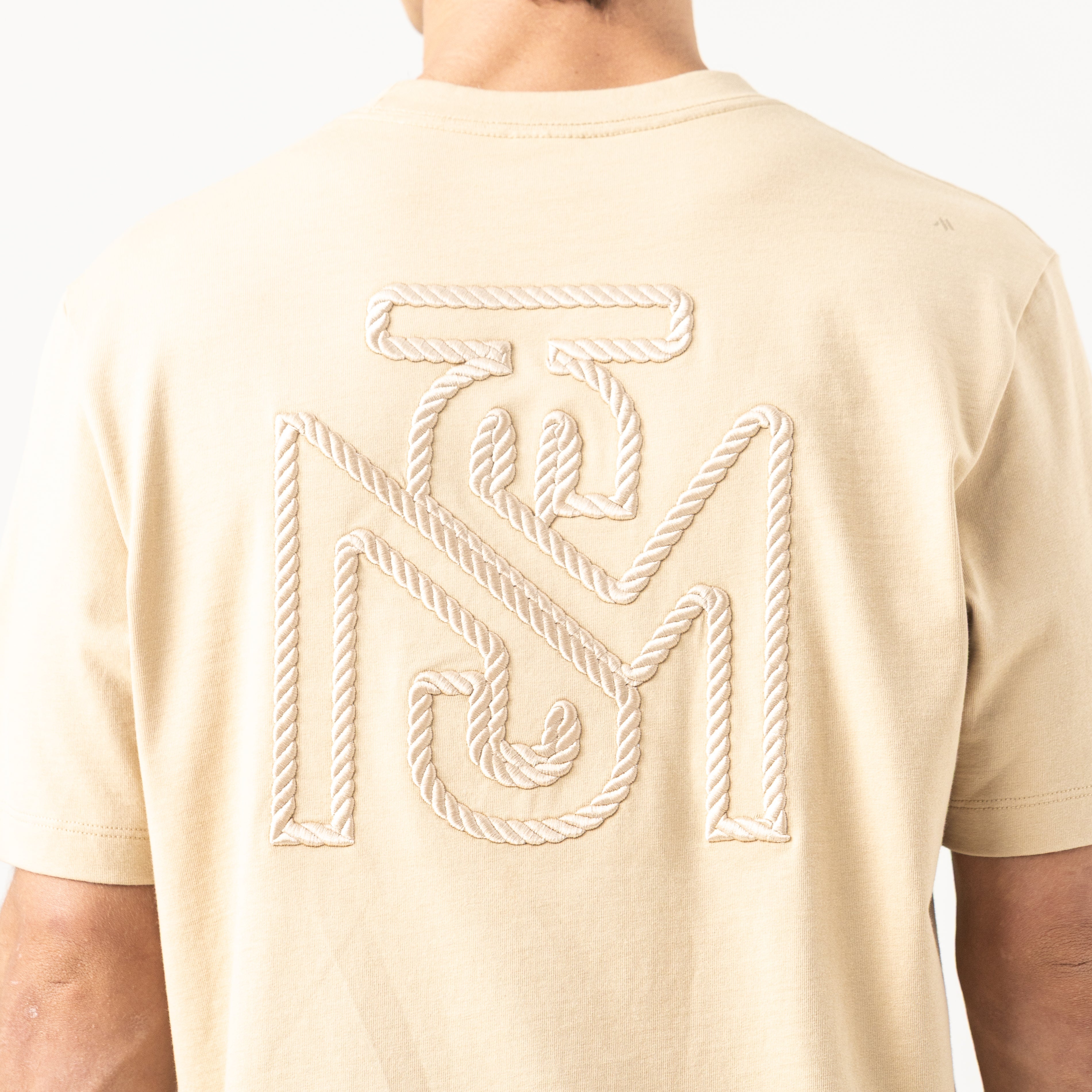 Friesian es una t-shirt masculina de silueta regular, confeccionada en algodón 100% de alta calidad. Su diseño incorpora un cuello en rib de 2.5 cm que aporta estructura y equilibrio. En el frente, la combinación de bordado efecto cuerda y bordado plano genera un contraste visual y táctil refinado, mientras que en la espalda, un logo de gran escala reproduce esta mezcla de técnicas con fuerza y profundidad. Una pieza concebida para quienes reconocen la artesanía como sello de distinción.