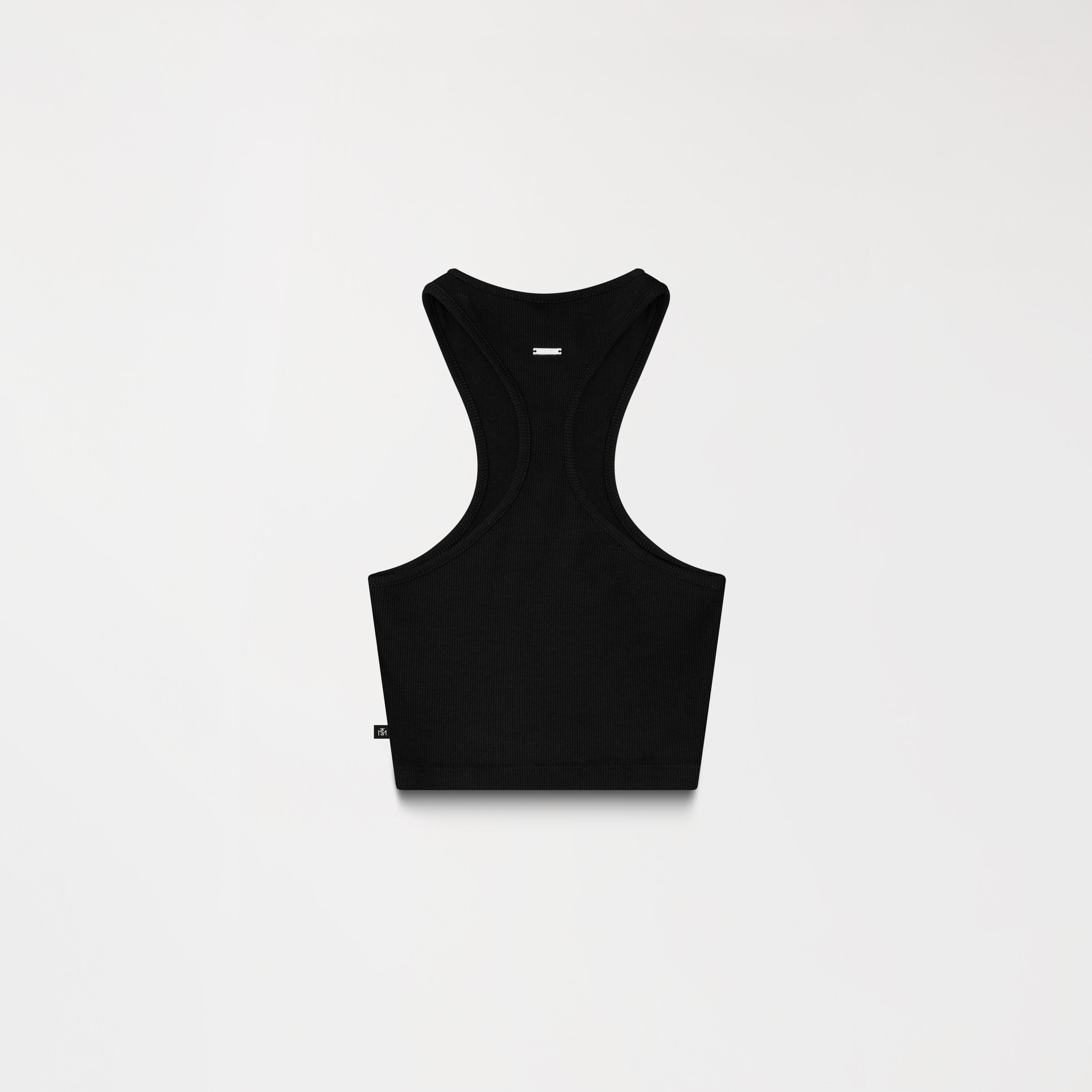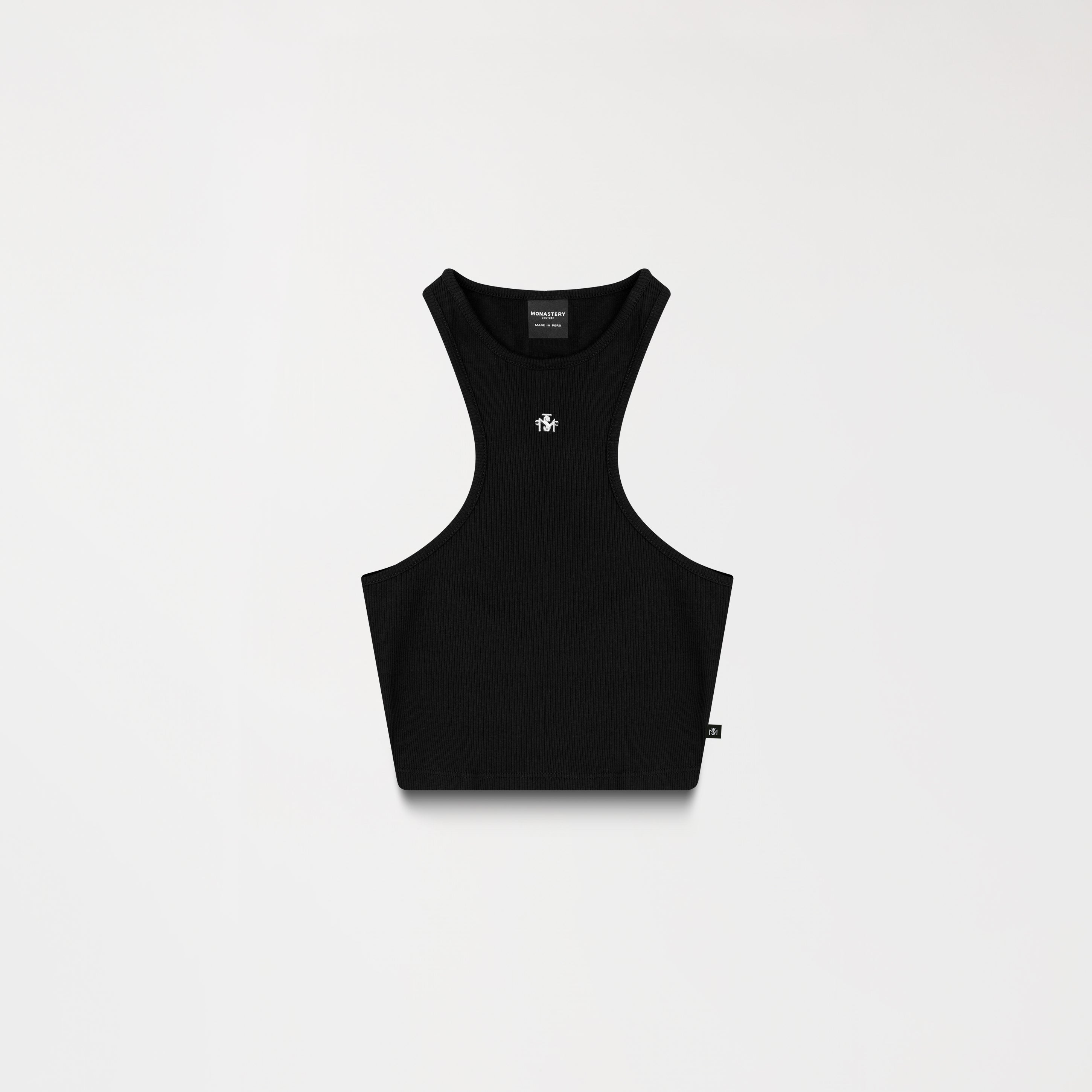 Tank Top femenino elaborado en Rib exclusivo para Monastery, Con una silueta limpia y estructurada, Genna contiene un insumo metálico TSM en plata brillante funciona como acento visual principal en el frente, mientras que en la espalda cuenta con un innsumo contramarcado Monastery,los insumos en acabado plata especial han sido diseñados con exclusividad, resaltando el valor de cada detalle, los cuales refuerzan su identidad desde una estética sobria y precisa.
