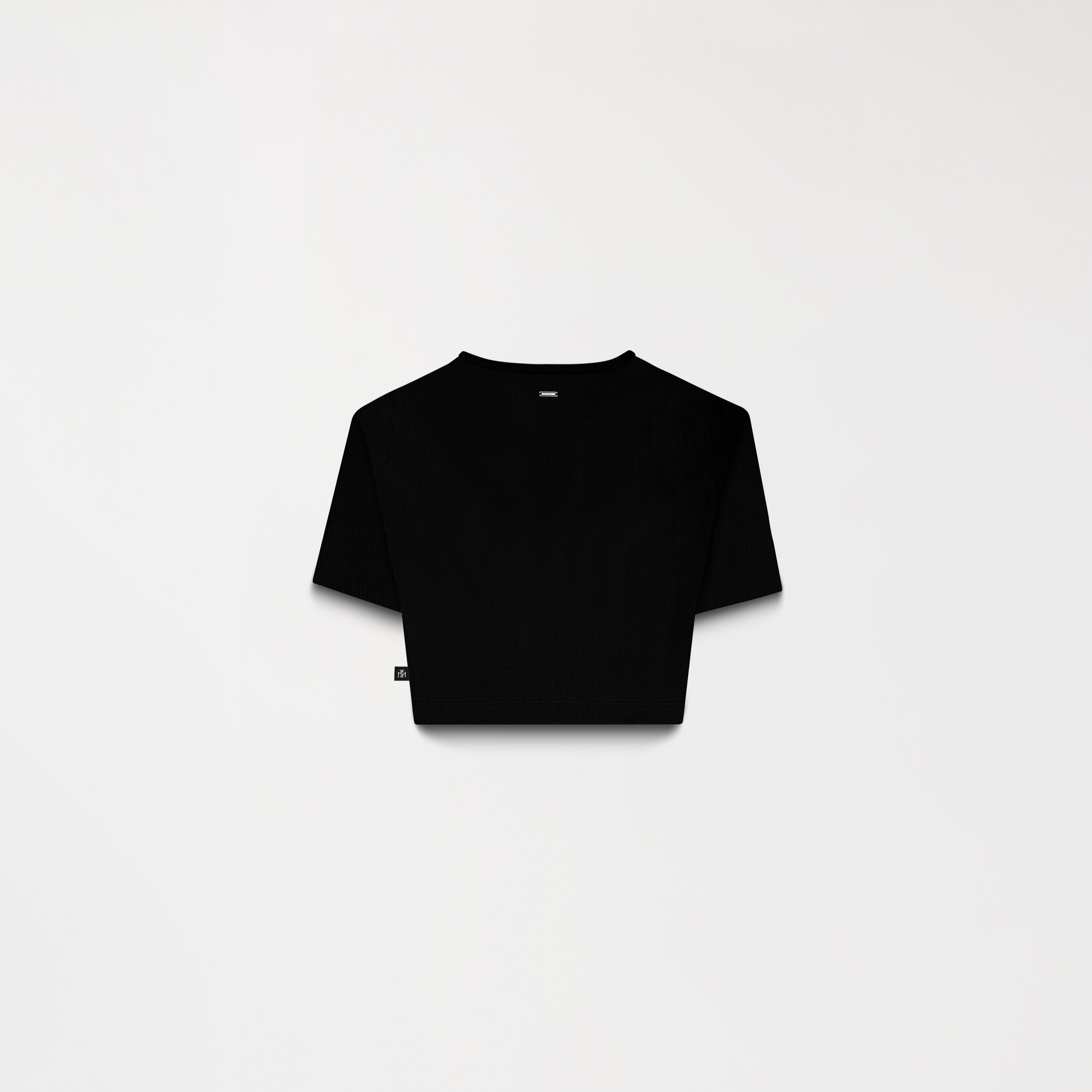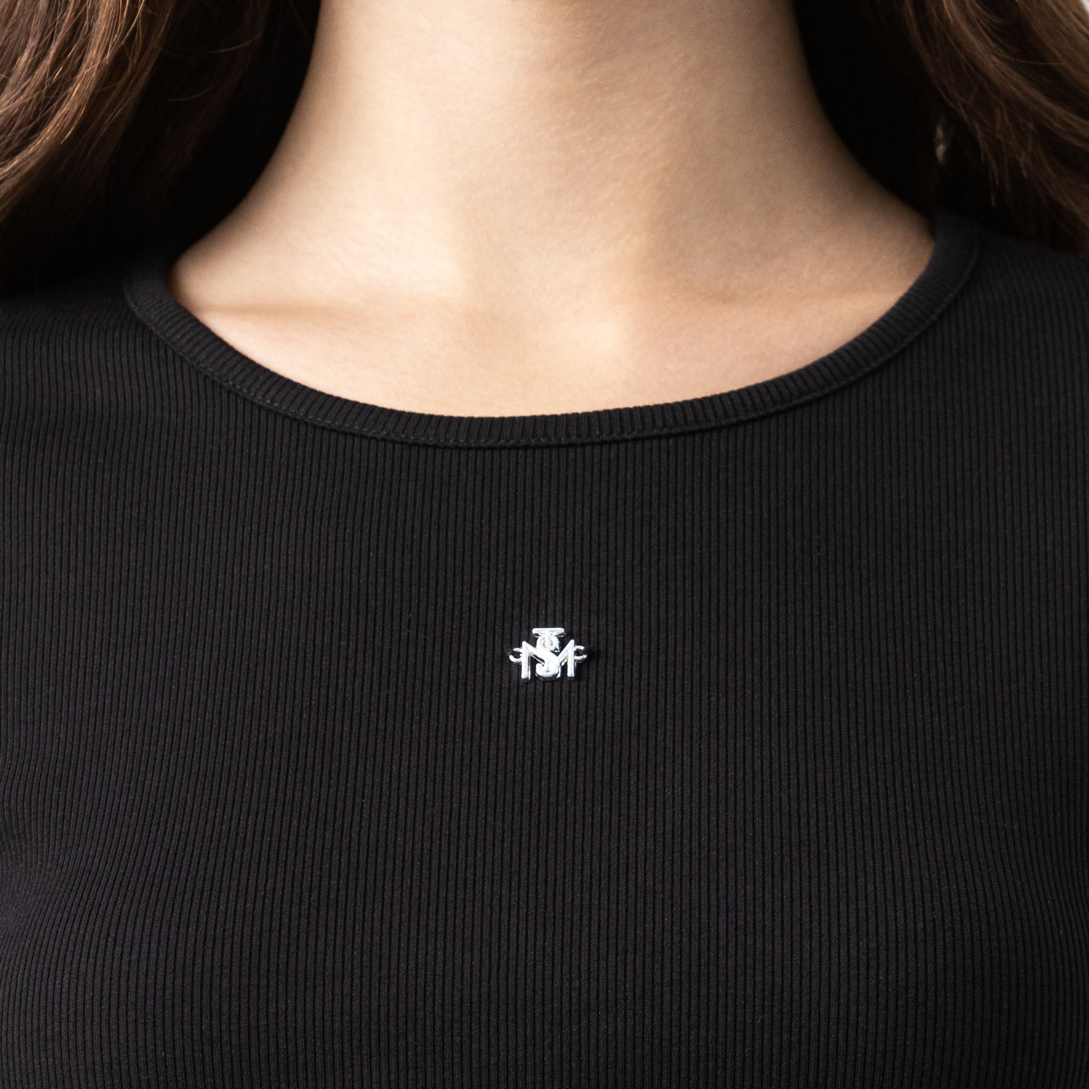 Croptop femenino elaborado en silueta pequeña pensada para resaltar la figura femenina, elaborada en Rib Monastery que brinda un mejor ajuste en el cuerpo, Godiva es una prenda con aplique metalico Tsm en frente y en espalda logo Monastery, brindan un aspecto elegante y contemporáneo por sus insumos plata brillante de alta calidad.