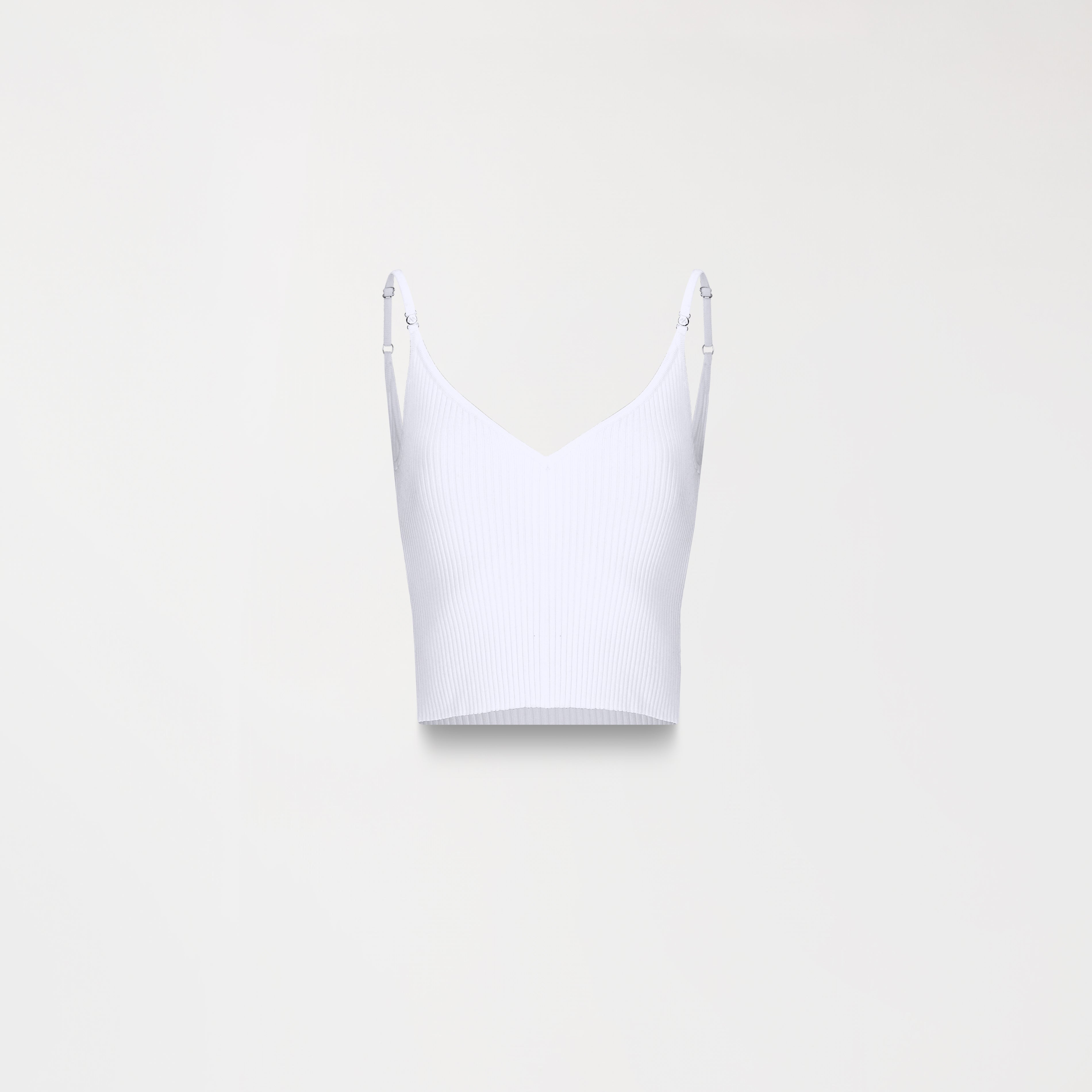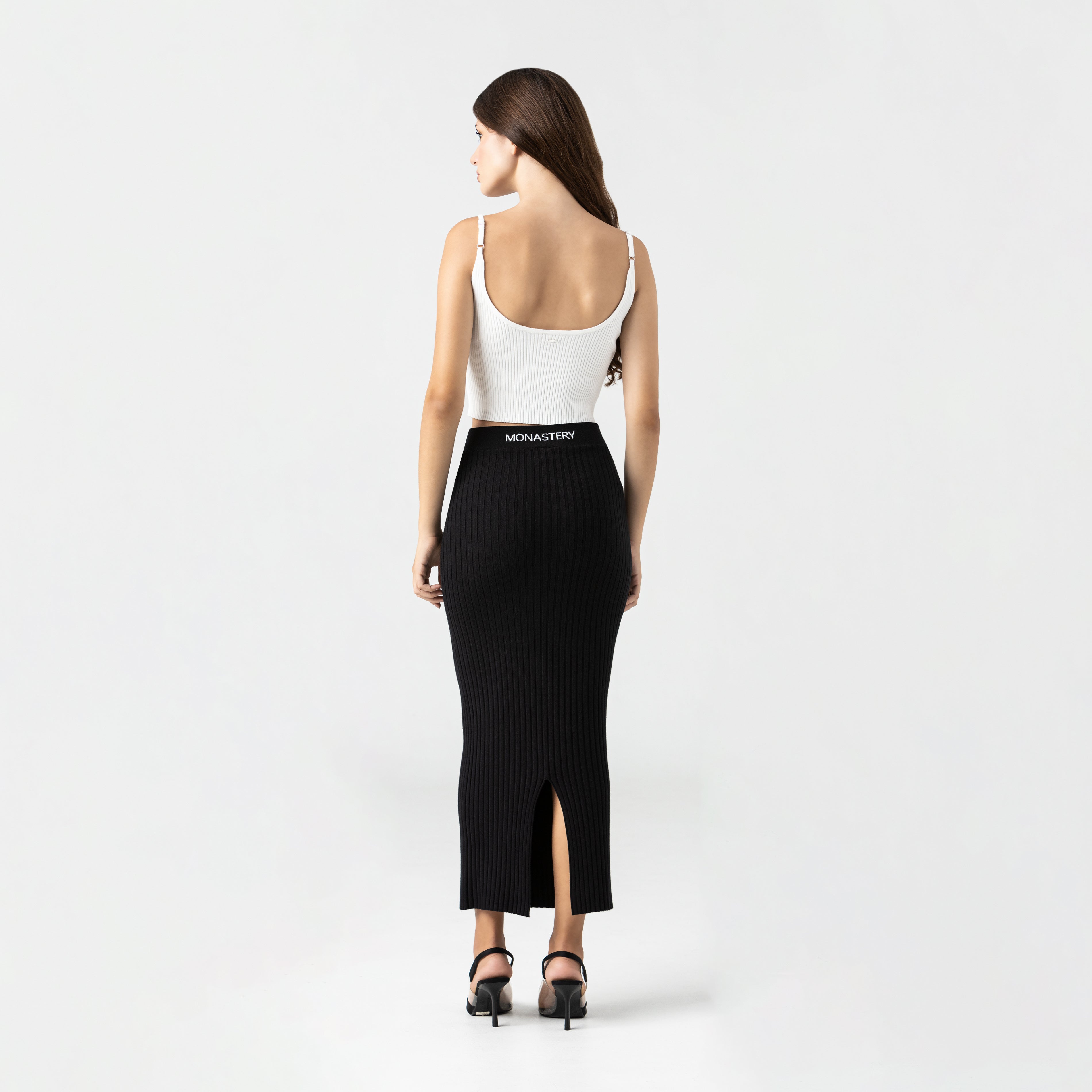Top femenino en tejido Monastery de ajuste impecable, diseñado para resaltar la silueta con sofisticación. Presenta un escote frontal sutil que equilibra visualmente con un escote posterior más profundo, revelando delicadamente la espalda. Los tirantes están adornados con pasadores metálicos de alta calidad, elaborados en plata brillante con acabados contramarcados que aportan luz y distinción. En la parte posterior, una placa metálica Monastery refuerza la identidad de la prenda con carácter y exclusividad. Cada componente ha sido cuidadosamente seleccionado para transformar esta pieza en un esencial moderno con fuerza estética y presencia refinada.