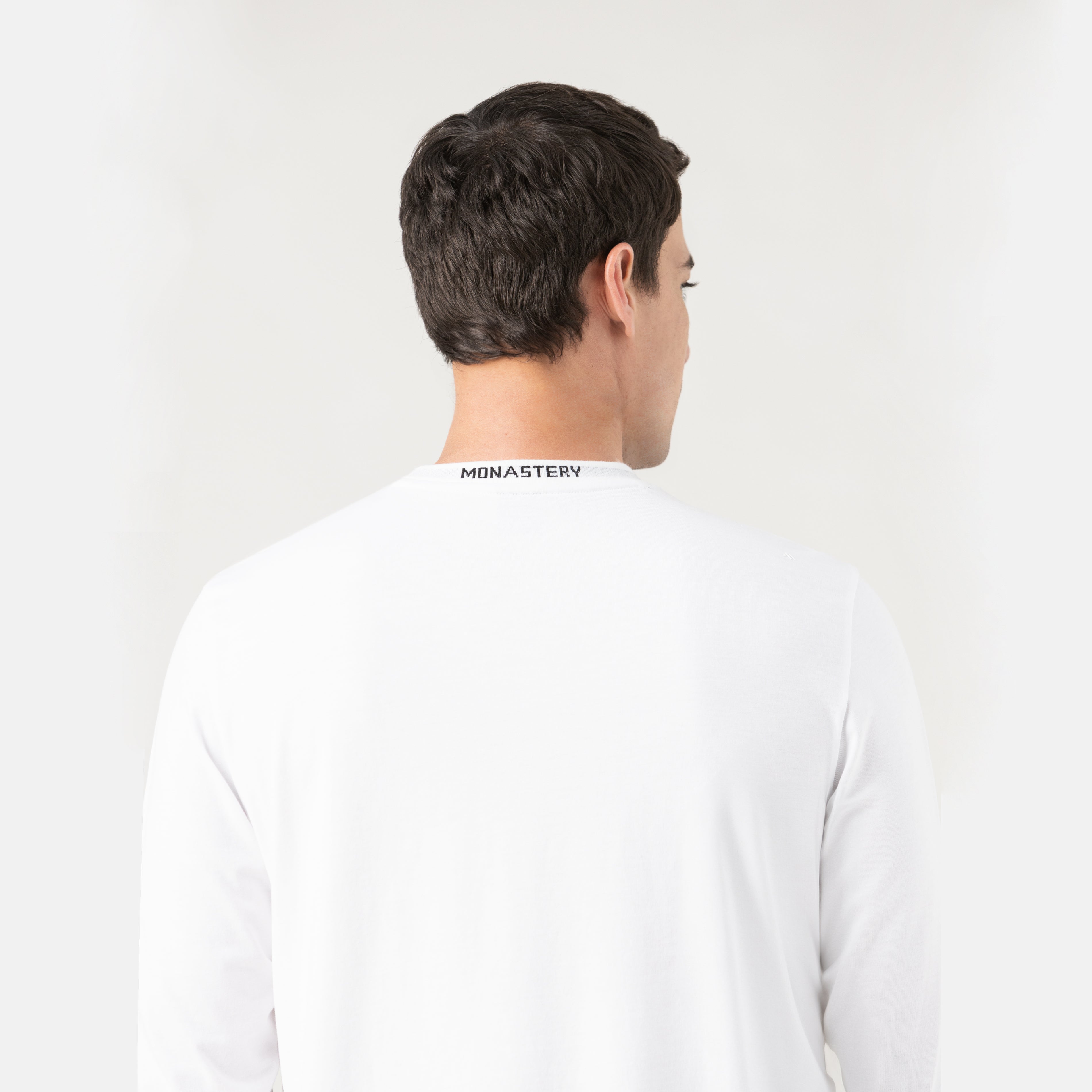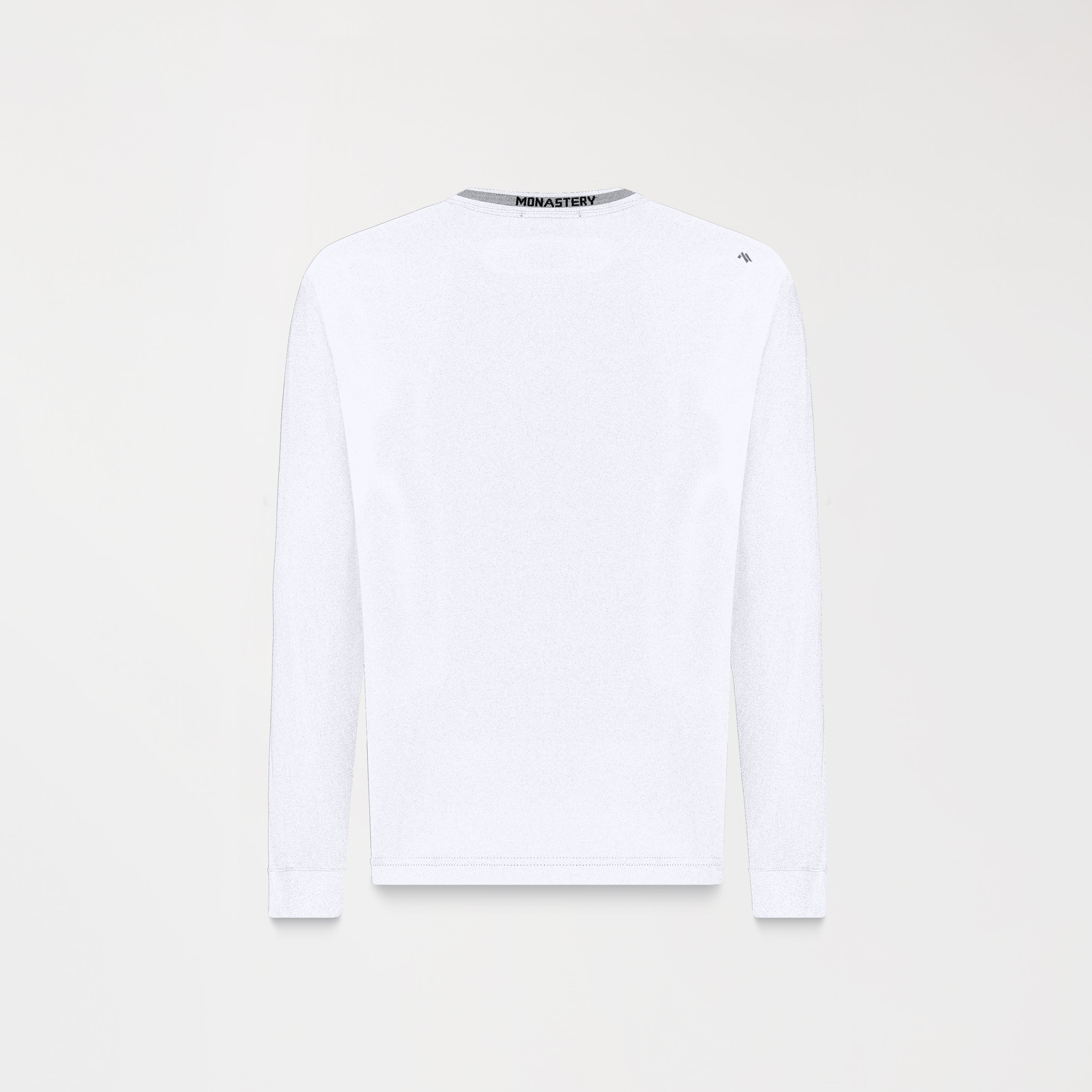 Harvin es un longsleeve masculino que equilibra sobriedad y carácter en cada elemento. Confeccionado en algodón MST, un desarrollo exclusivo de Monastery que combina suavidad, estructura y resistencia, presenta un doble cuello de 2 cm que otorga firmeza y definición a la silueta. En la parte posterior del cuello, un arte tejido con el nombre Monastery aporta un gesto gráfico sutil, mientras que la espalda cobra protagonismo con el logo insignia en técnica de alta densidad, generando volumen y presencia visual. Una pieza concebida para el uso cotidiano, donde la identidad se expresa en cada detalle..