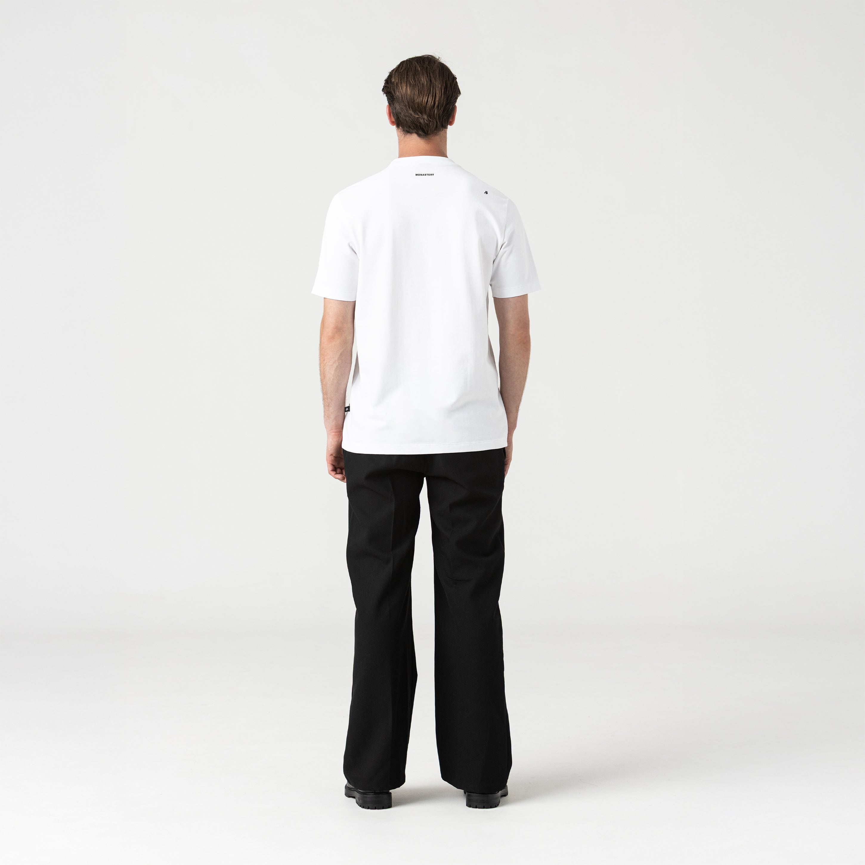 Confeccionada en tela Monastery, proporciona suavidad, estructura y un fit cómodo para el uso diario. Incorpora un cuello en rib de 2.5 cm, El frente se destaca con un estampado plano, limpio y versátil, mientras que el detalle diferencial está en el plastisol plano aplicado sobre pespuntes, que agrega textura sutil y precisión visual, elevando la prenda con un toque moderno. Una camiseta que demuestra que el detalle marca la diferencia.