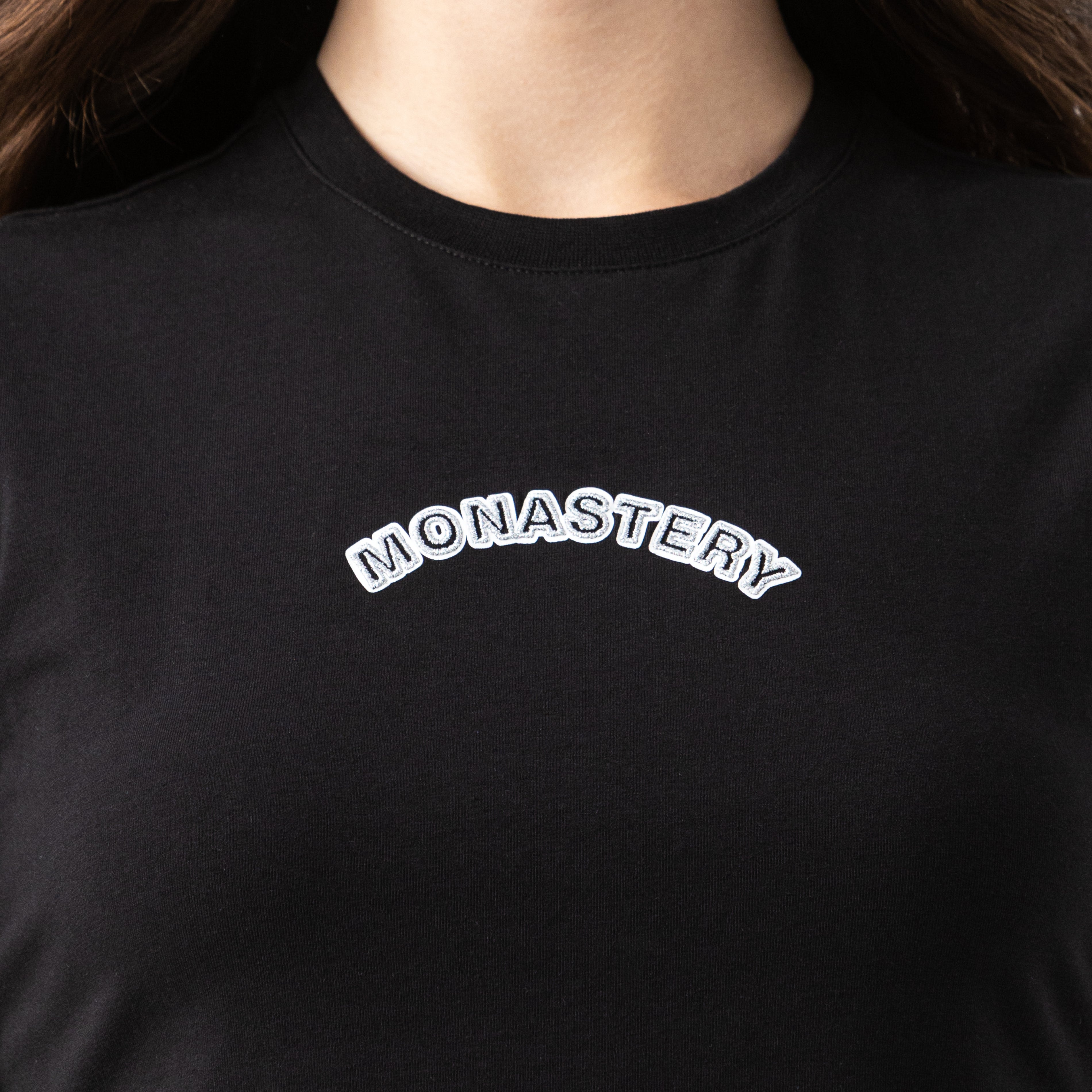 textil, fresca y ajustada. Kirsi contiene un arte Monastery ubicado de forma curva en el centro frente con