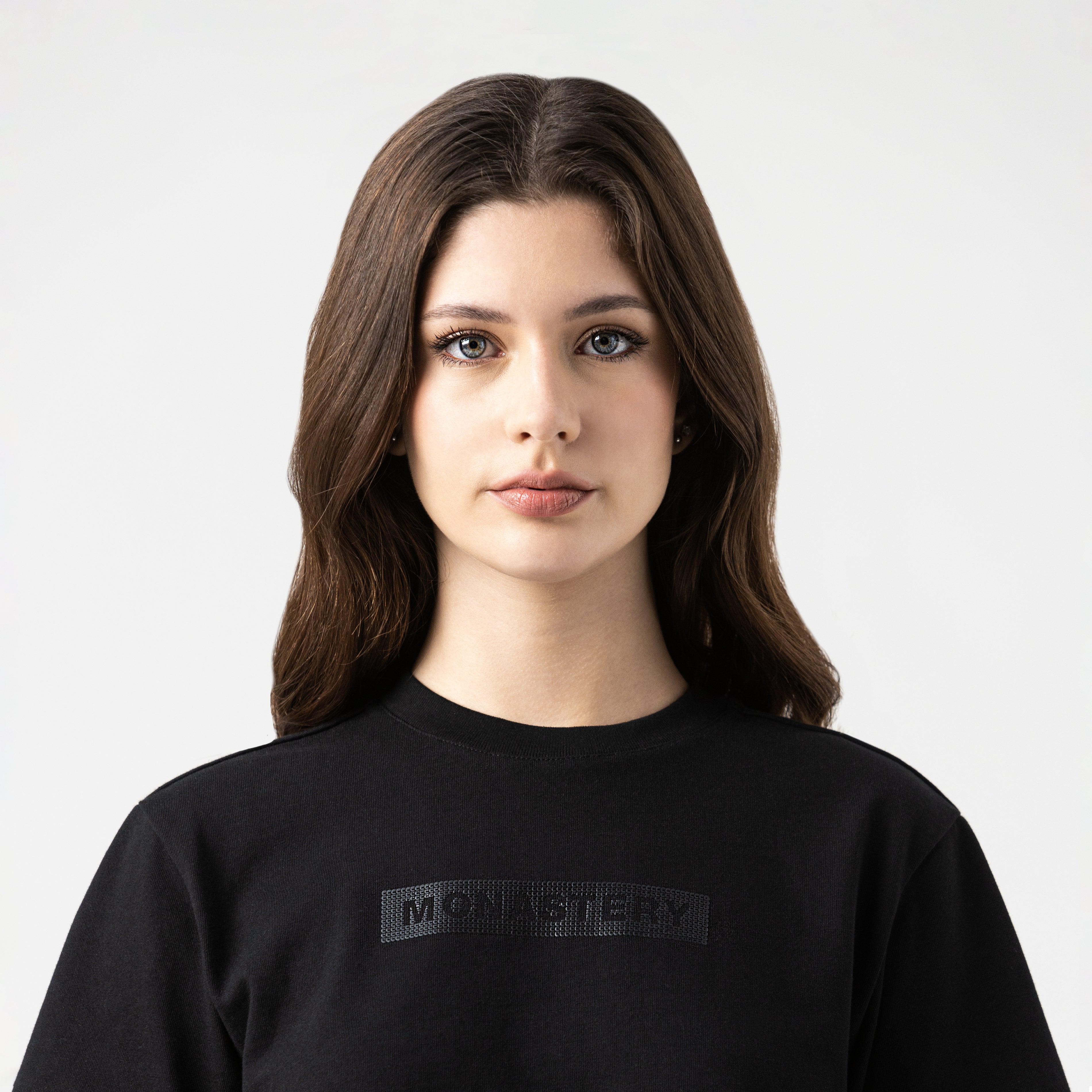 El crop top femenino Leire está confeccionado en algodón 100% exclusivo para Monastery, con una silueta pequeña que realza la figura y ofrece un ajuste cómodo y favorecedor. En el frente, destaca el logo Monastery aplicado en técnica estampado de alta densidad combinado con foil negro imitación lentejuelas, logrando un acabado vibrante y original. En la espalda, los logos insignia se presentan en estampado plano, reforzando la identidad de la marca. Perfecta para quienes buscan originalidad y calidad en su vestuario diario.