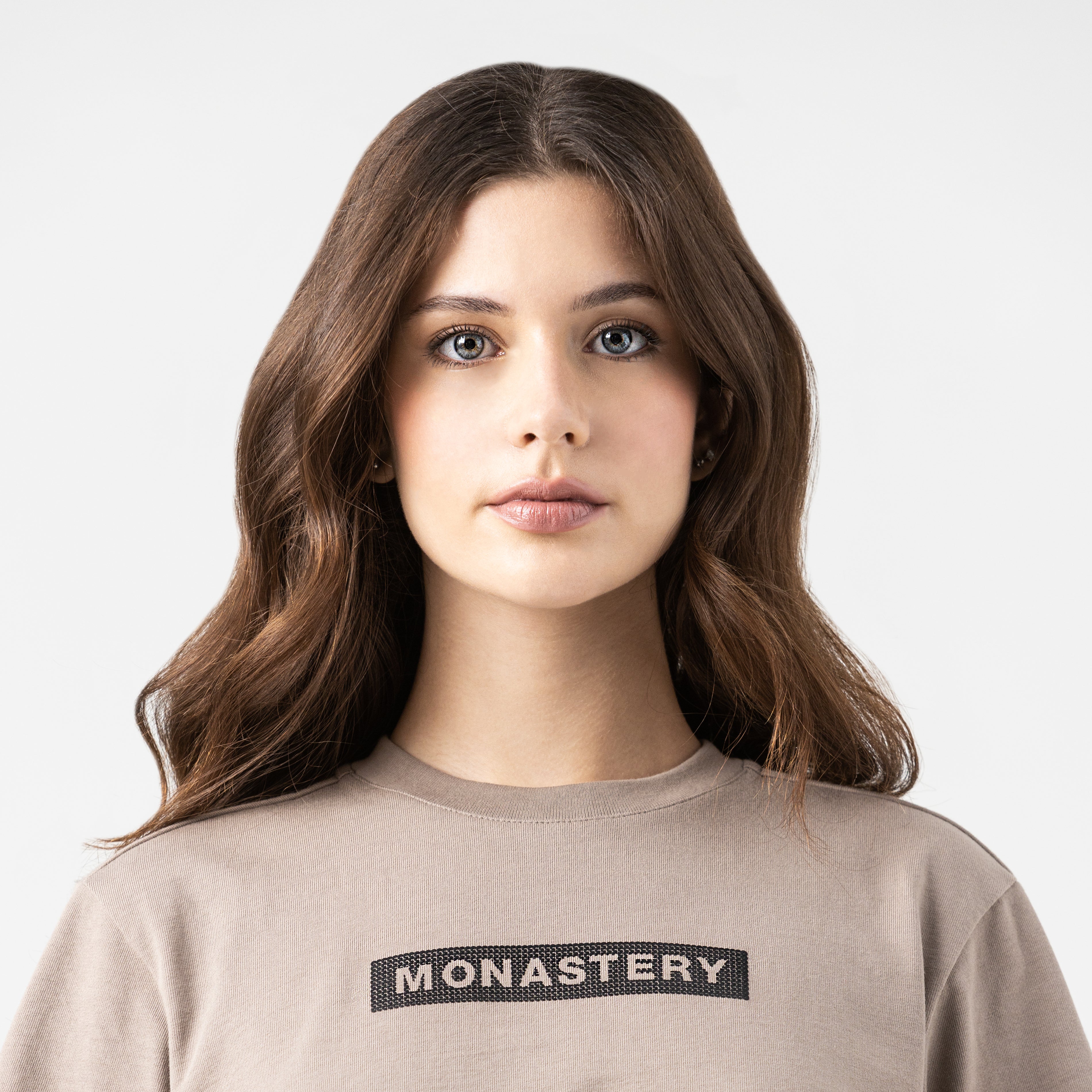 El crop top femenino Leire está confeccionado en algodón 100% exclusivo para Monastery, con una silueta pequeña que realza la figura y ofrece un ajuste cómodo y favorecedor. En el frente, destaca el logo Monastery aplicado en técnica estampado de alta densidad combinado con foil negro imitación lentejuelas, logrando un acabado vibrante y original. En la espalda, los logos insignia se presentan en estampado plano, reforzando la identidad de la marca. Perfecta para quienes buscan originalidad y calidad en su vestuario diario.