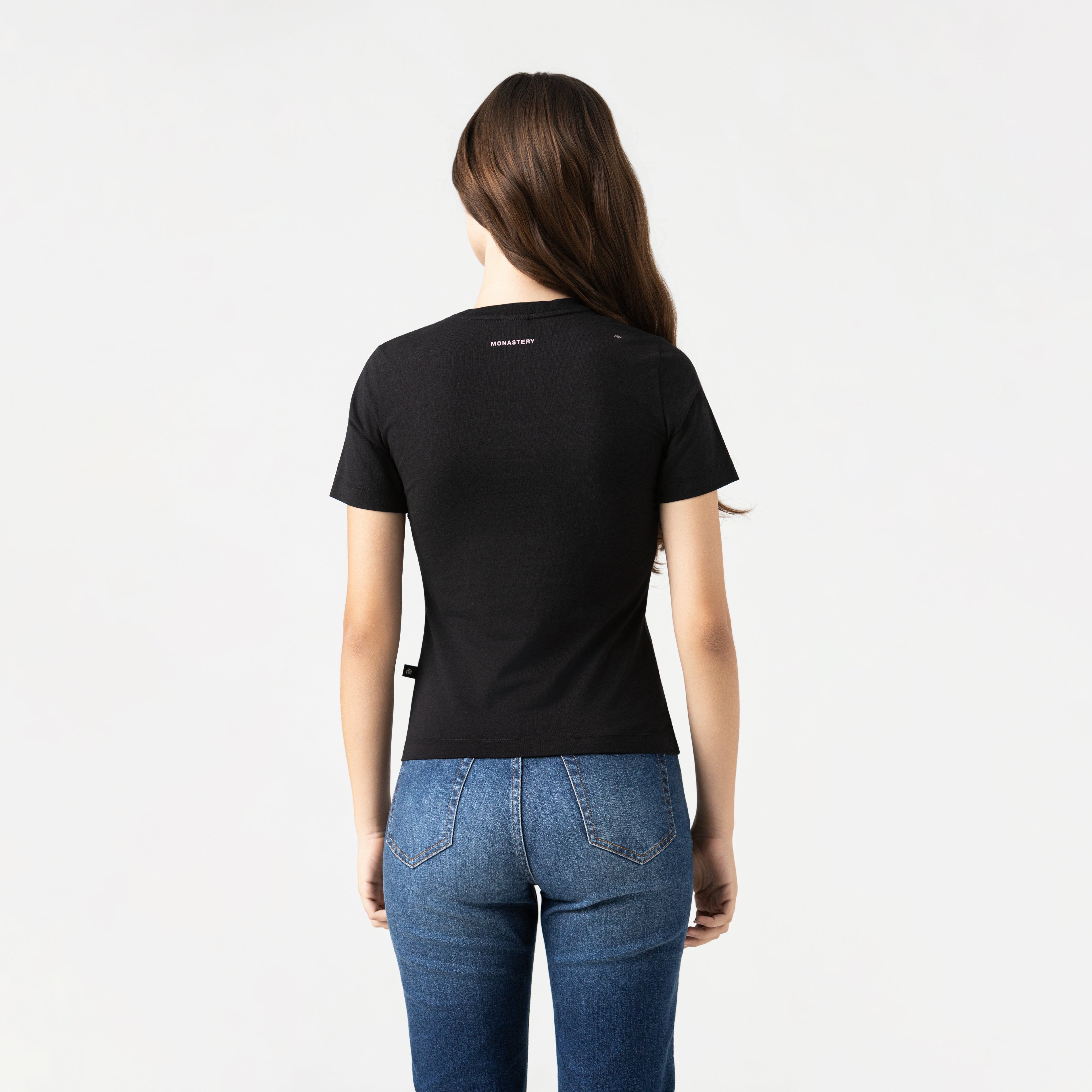 T-shirt femenina elaborada en silueta pequeña pensada para resaltar la figura femenina, atravez de su base