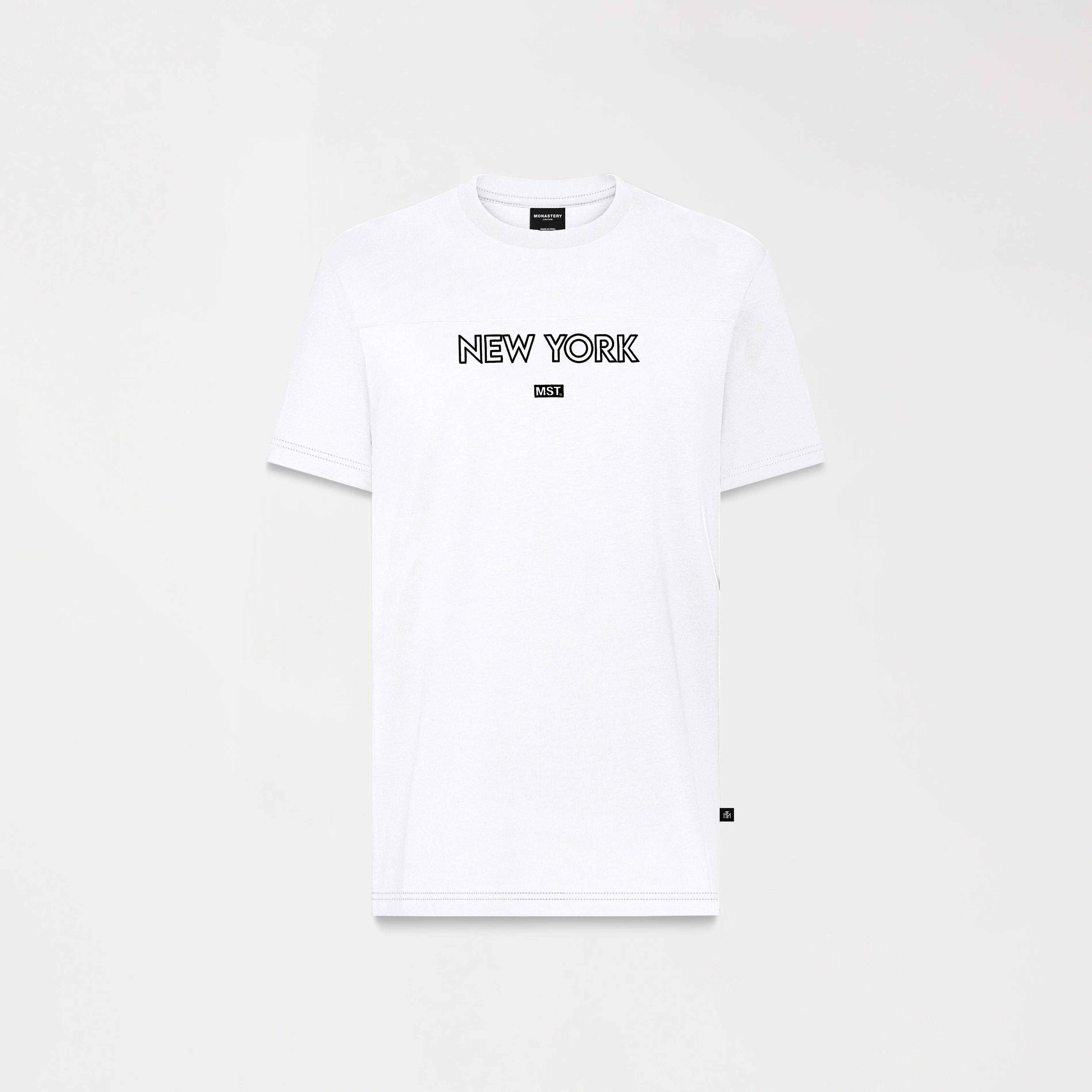 Descubre la elegancia y comodidad en nuestra Playera blanca Misty regular fit, elaborada en un algodón exclusivo base textil Monastery. Con un corte moderno que se adapta a cualquier estilo, esta prenda destaca por su bordado 3D de "NEW YORK" en el frente, complementado por un bordado plano en las letras restantes. En la parte posterior, la técnica de alta densidad asegura un acabado versátil y duradero. Ideal para los amantes de la moda, combina estilo y confort en una sola pieza. ¡Luce impecable en cualquier ocasión!