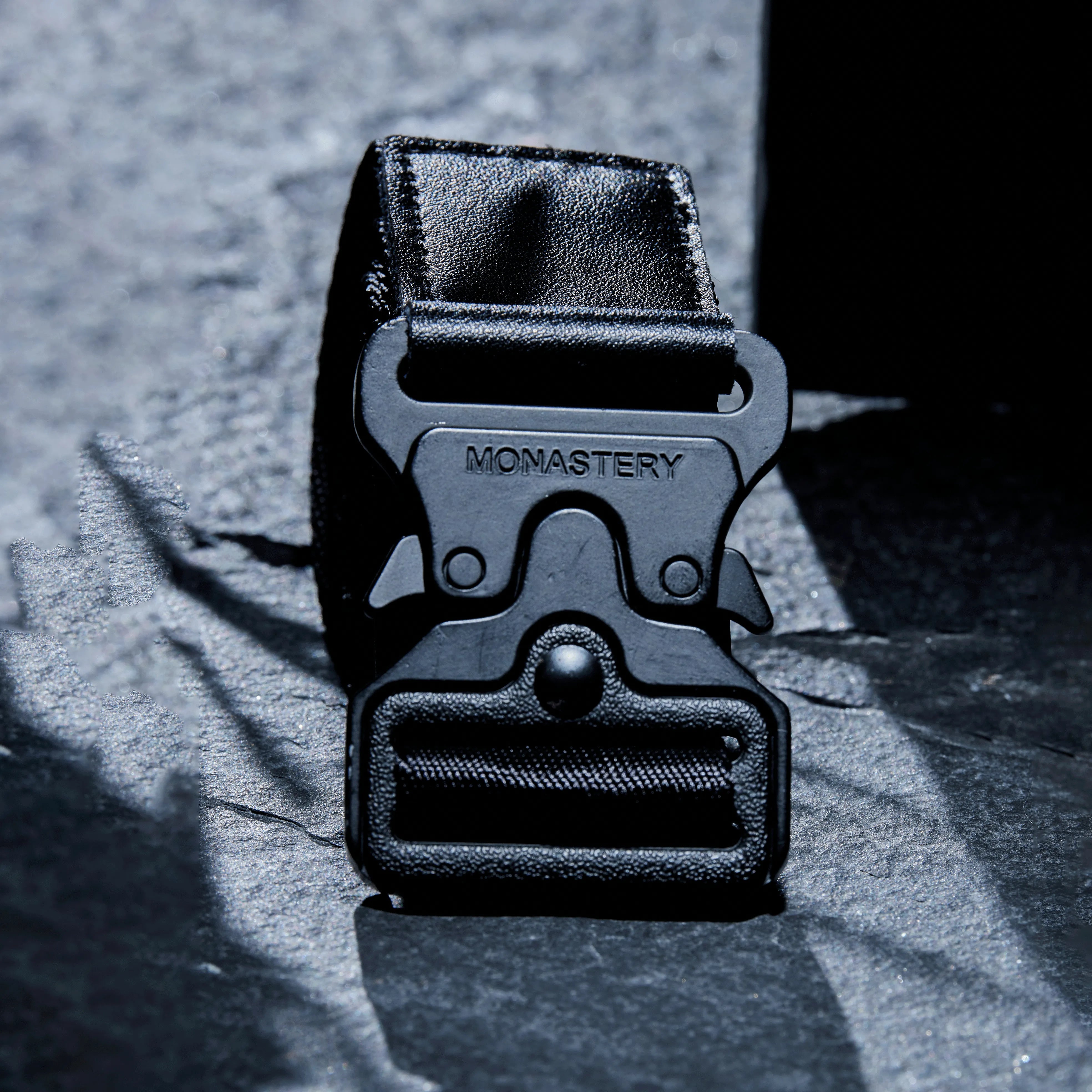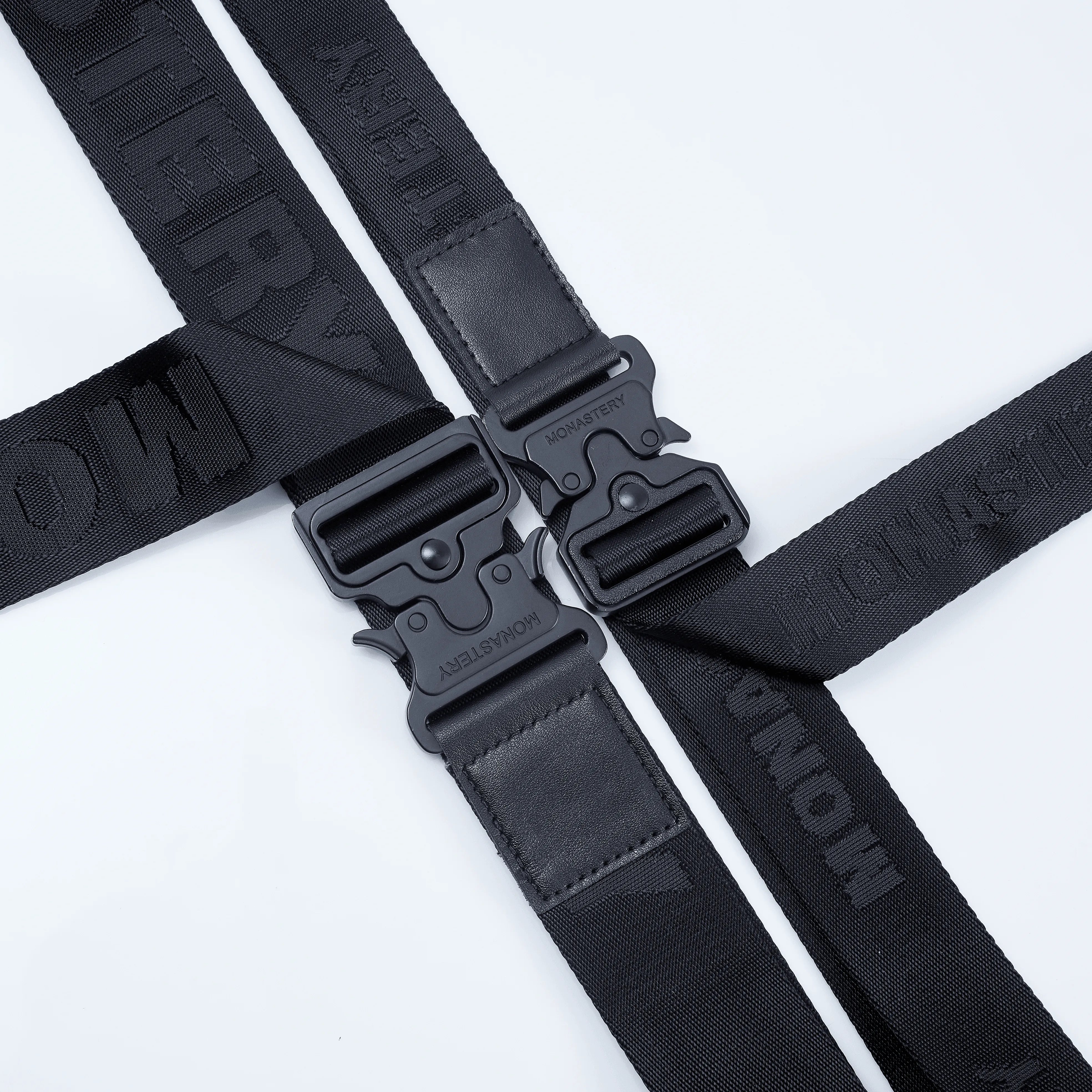 Nuestro cinturón de estilo industrial, confeccionado con tejido de alta calidad que lleva el distintivo "Monastery" en su diseño. Este cinturón viene acompañado de un herraje metálico contramarcado, ofreciendo un toque de sofisticación y durabilidad.