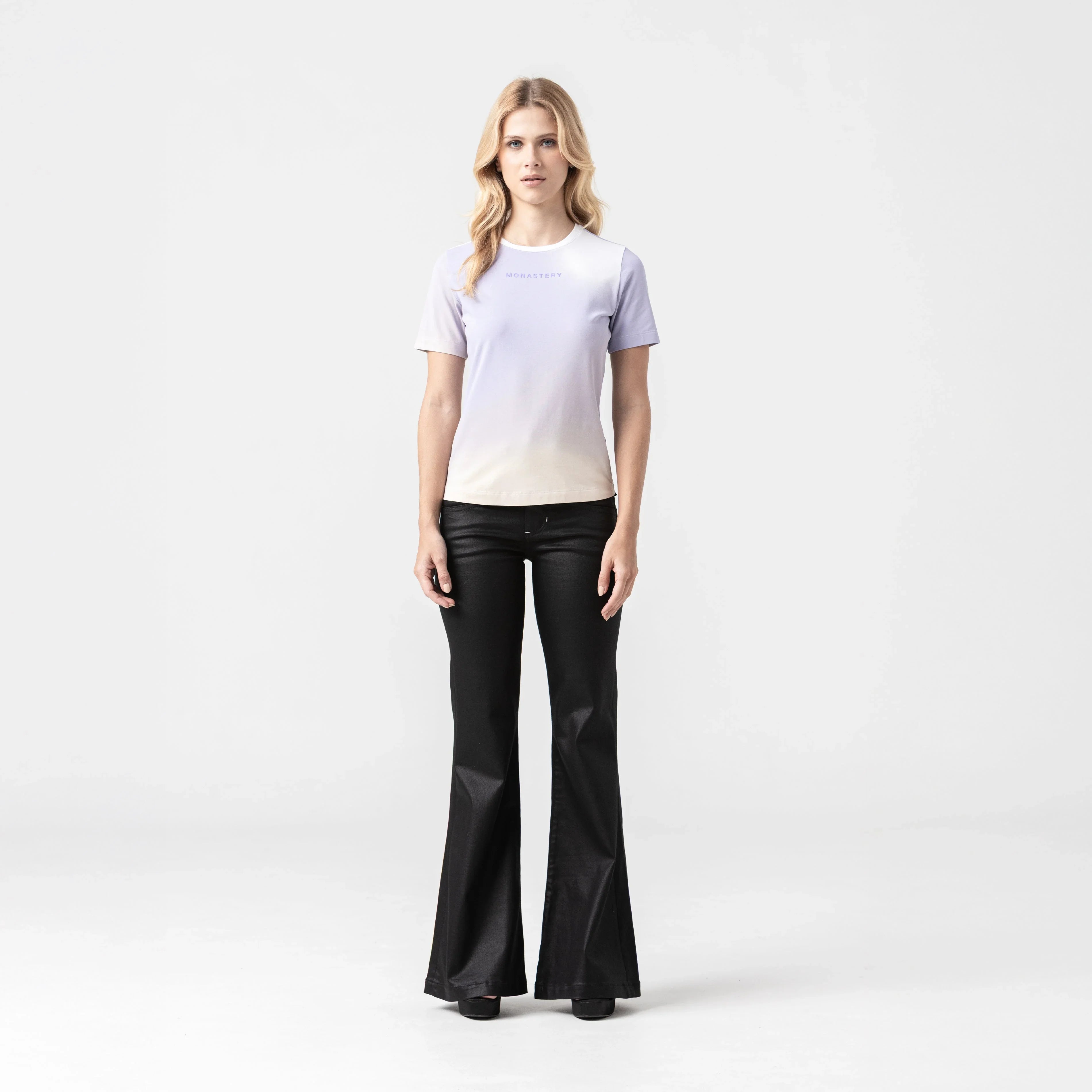 Niya es una camiseta silueta pequeña, Brinda una silueta estilizada, realizada en premium cotton y elastano para mayor confort, presenta un diseño minimalista y moderno, ideal para quienes buscan una prenda versátil con un toque sofisticado. Su efecto degradado en tecnica all over print crea una transición sutil desde un tono blanco hasta una tonalidad thistle y whitecap gray en toda la prenda y en frente nuestro inconico logo Monastery estampado en alta densidad brindan un aspecto elegante y contemporáneo.