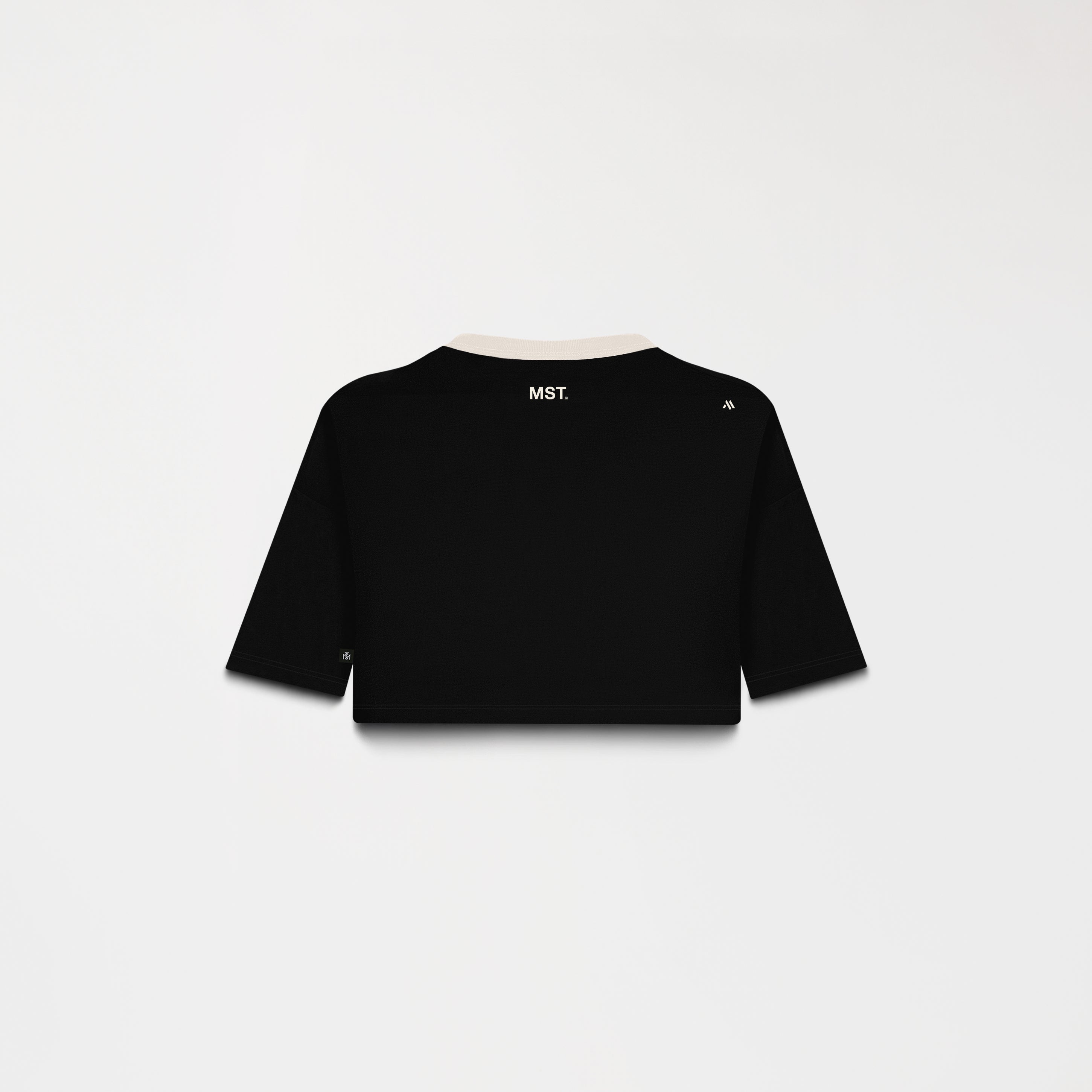 Noora es un crop top confeccionado en 100% algodón ultra siliconado de alta calidad, con una silueta pequeña que realza la figura con sutileza. En el frente, un bordado tipo aplique aporta textura y un detalle artesanal distintivo, mientras que en la parte posterior un estampado plano equilibra la composición visual. Una prenda versátil que eleva atuendos casuales y se adapta con naturalidad a estilismos contemporáneos y sofisticados.