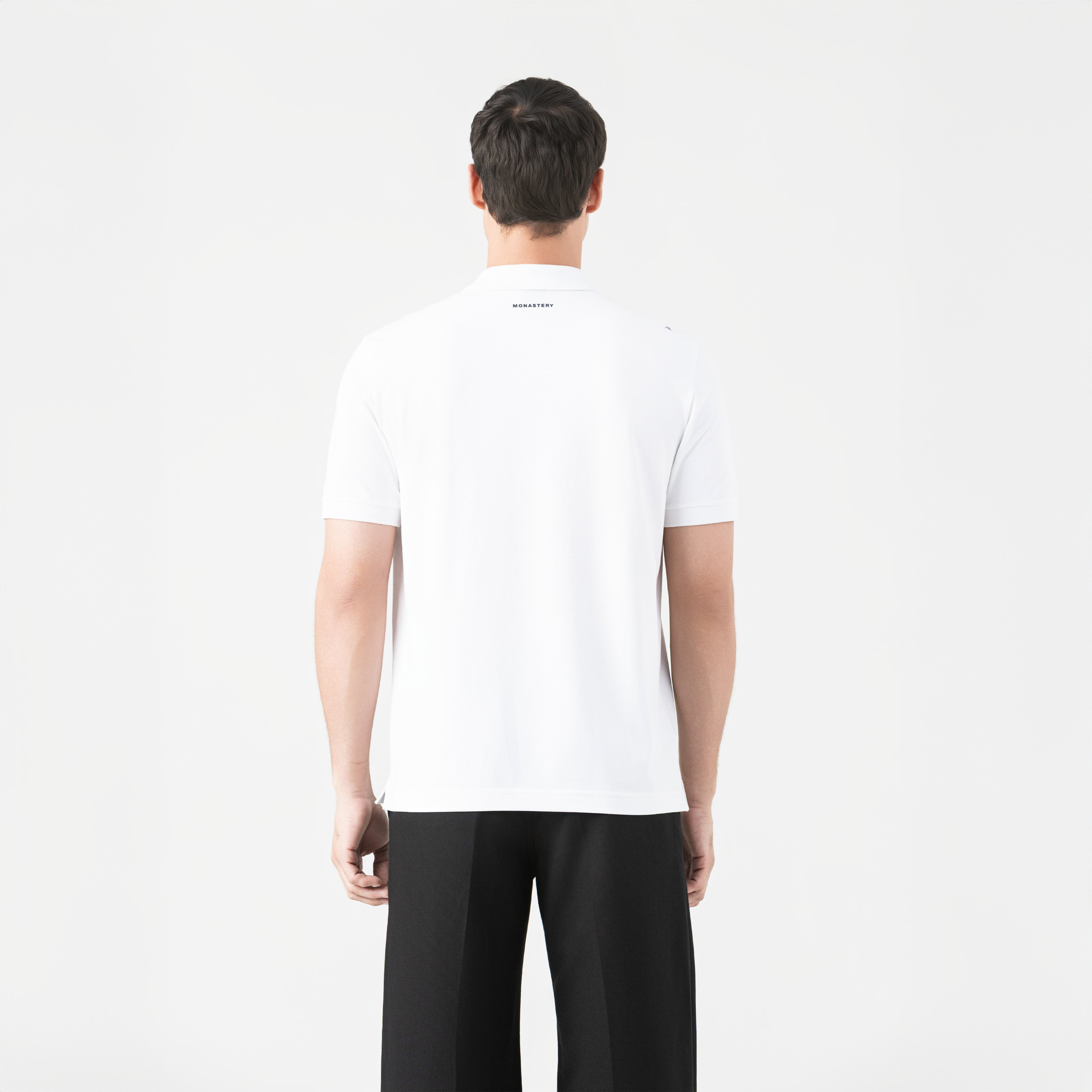 La polo Othar redefine la elegancia casual con una silueta regular limpia y detalles de alto nivel, confeccionada en algodón 100% pima peruano exclusivo para Monastery. Su cuello y puños tejidos aportan estructura, mientras que la perilla con botonadura oculta y sesgos en contraste añade un acabado sofisticado. El bordado plano en la perilla y el estampado en alta densidad en la espalda elevan el carácter distintivo de la prenda. Ideal para quienes buscan estilo con discreción y autenticidad en cualquier ocasión.