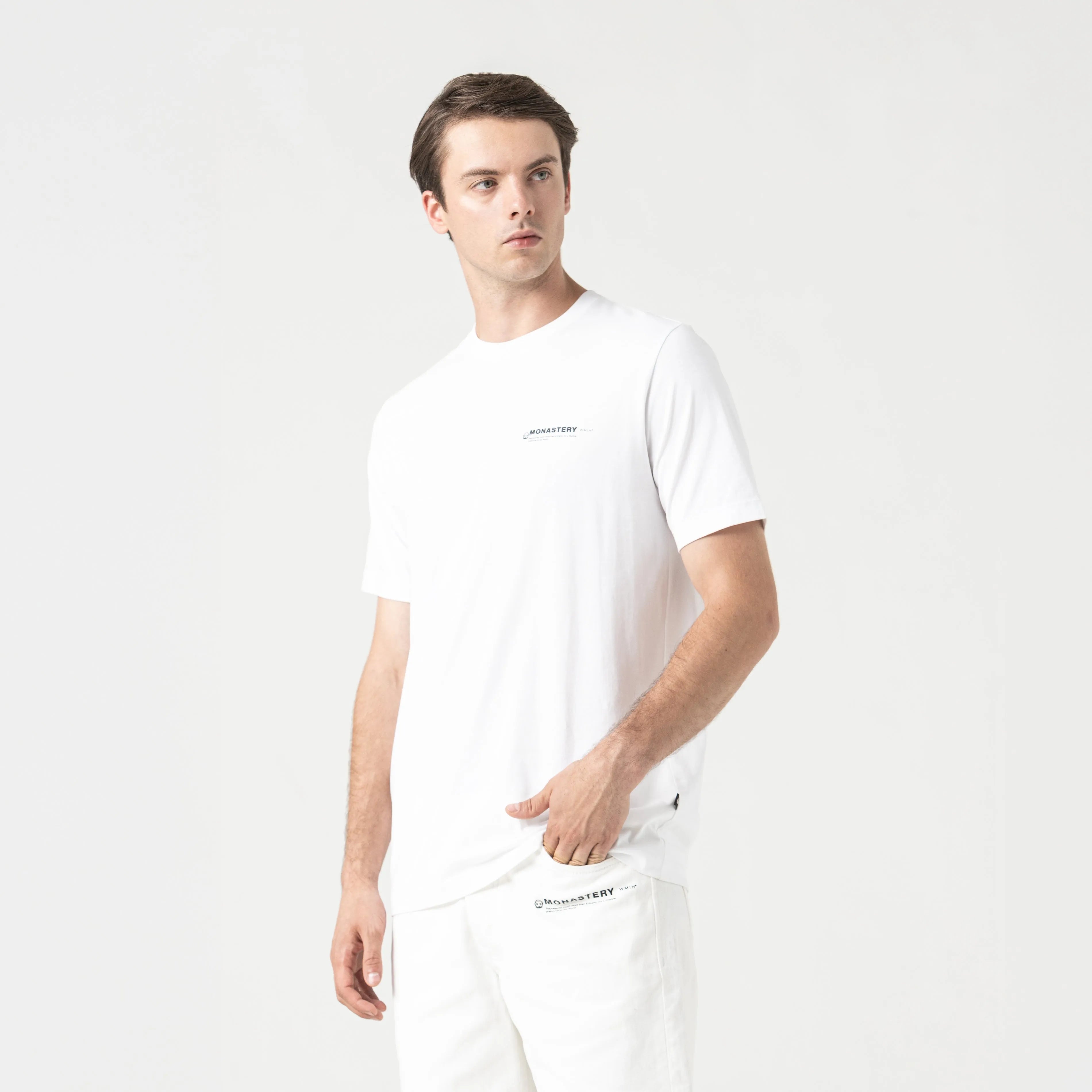 Playera de silueta regular con cuello en sesgo, confeccionada en exclusivo algodón pima 100% peruano para Monastery. Pantro es una prenda masculina fresca y versátil, que destaca por su diseño contemporáneo y la aplicación directa del arte MONASTERY al costado izquierdo. Un esencial que aporta carácter y equilibrio a tu vestuario.