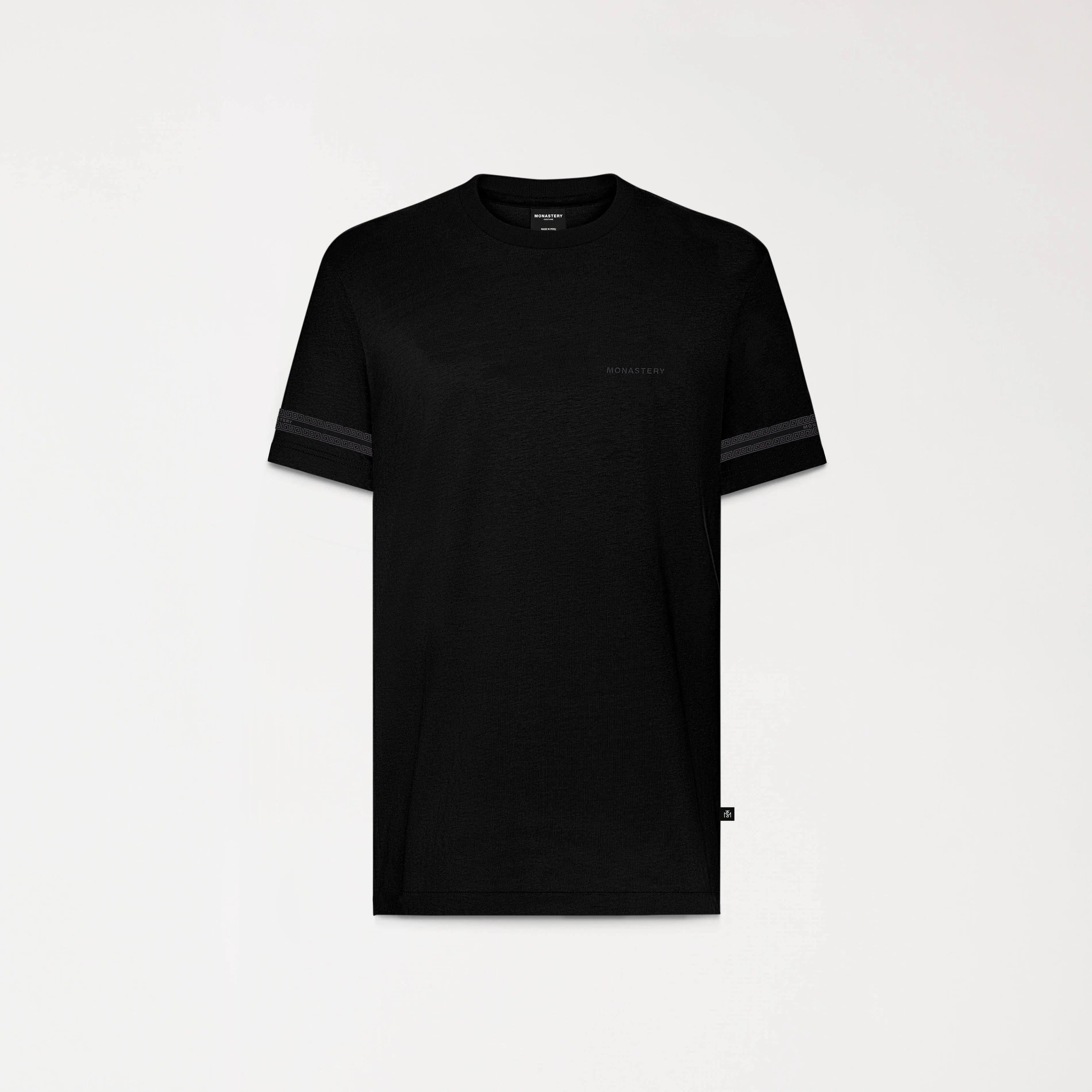 La Playera Peynet negra elaborada en algodón Monastery de alta calidad, esta Playera de silueta regular presenta un cuello de 3 cm que asegura comodidad y estilo. Destaca por su arte de cenefa en discos en semialta densidad en las mangas, aportando un toque dinámico y moderno. En el frente, el texto "MONASTERY" está bordado en el punto corazón, mientras que la parte posterior cuenta con un diseño clásico de logos insignia en alta densidad. Ideal para quienes buscan una prenda que combine originalidad y sofisticación, la Playera Peynet es perfecta para cualquier ocasión.
