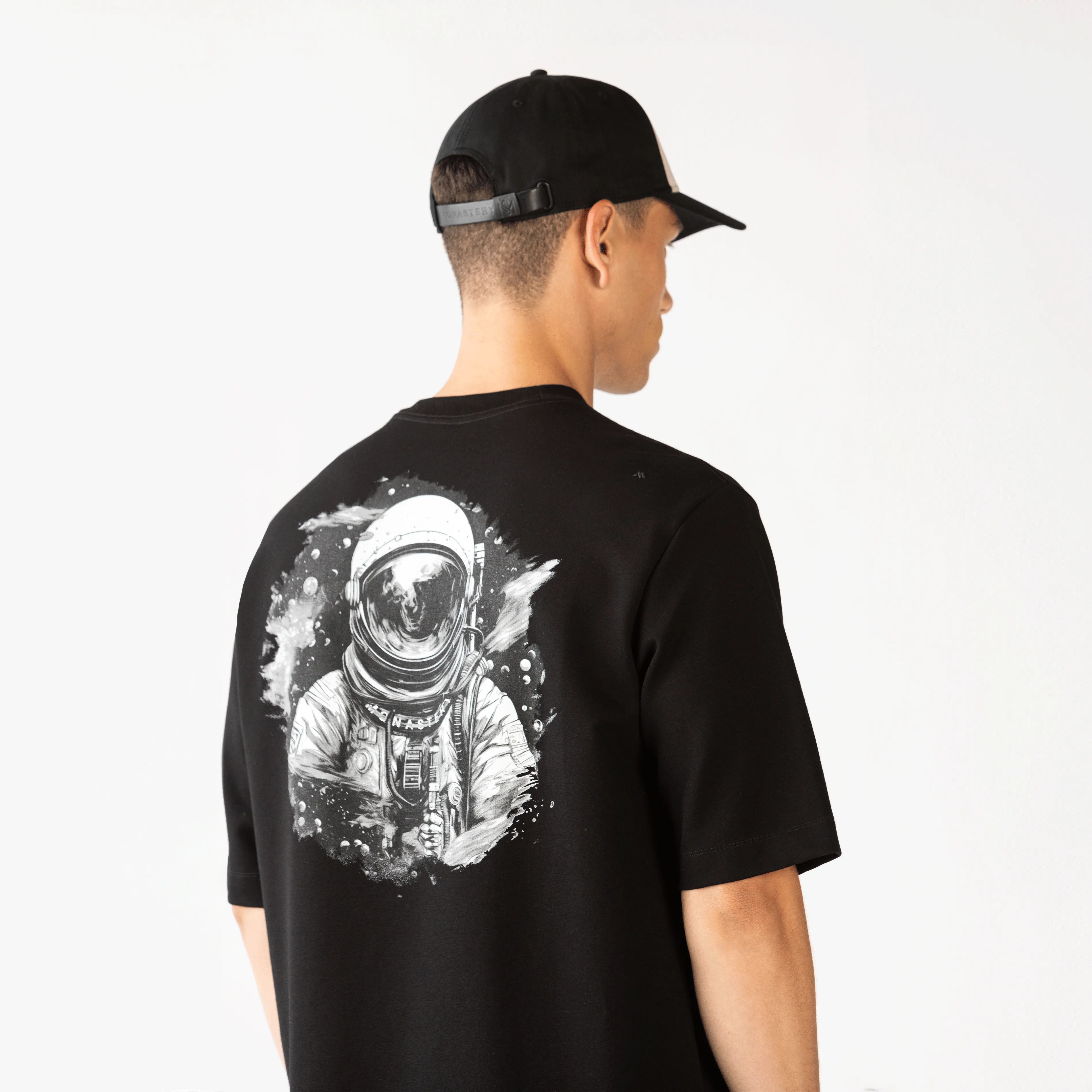 Camiseta Oversized negra para hombre, confeccionada en una base textil exclusiva para Monastery, esta camiseta destaca por su arte de nuestro logo "Phillip" bordado en 3D ubicado en punto corazón, aportando un toque distintivo y moderno. En la parte posterior, el logo "Phillip" también se presenta estampado en tramas, complementado con el logo insignia en alta densidad. Ideal para un look cómodo y estilizado, perfecto para el uso diario.