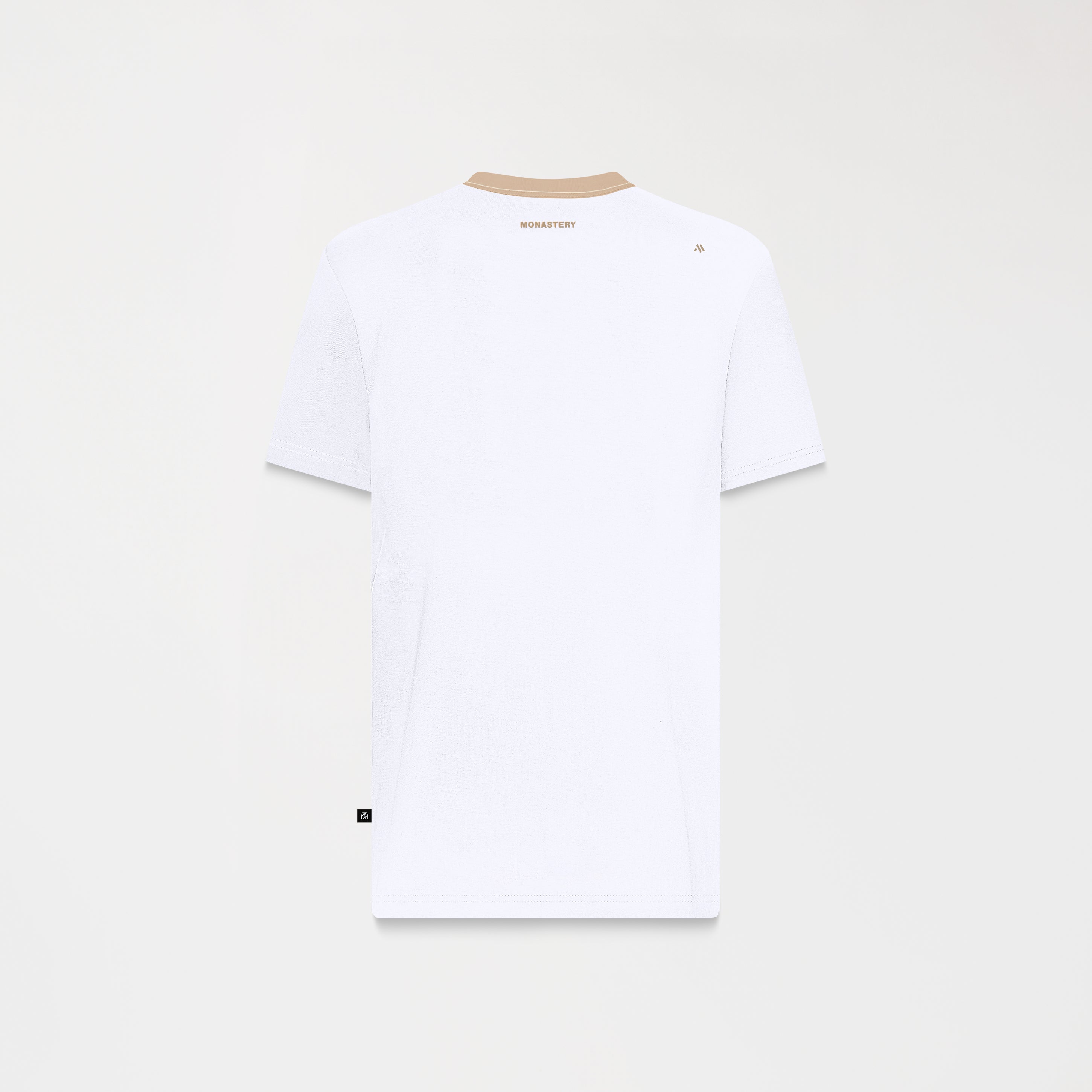 Siux es una T-shirt de silueta regular confeccionada en tela Monastery 2, un algodón de alta calidad que combina suavidad y definición. Su cuello en rib en contraste aporta un detalle visual distintivo, mientras que el bordado 3D en el frente introduce volumen y textura. En la parte posterior, un estampado plano de acabado limpio completa el diseño, equilibrando precisión técnica y estética contemporánea.