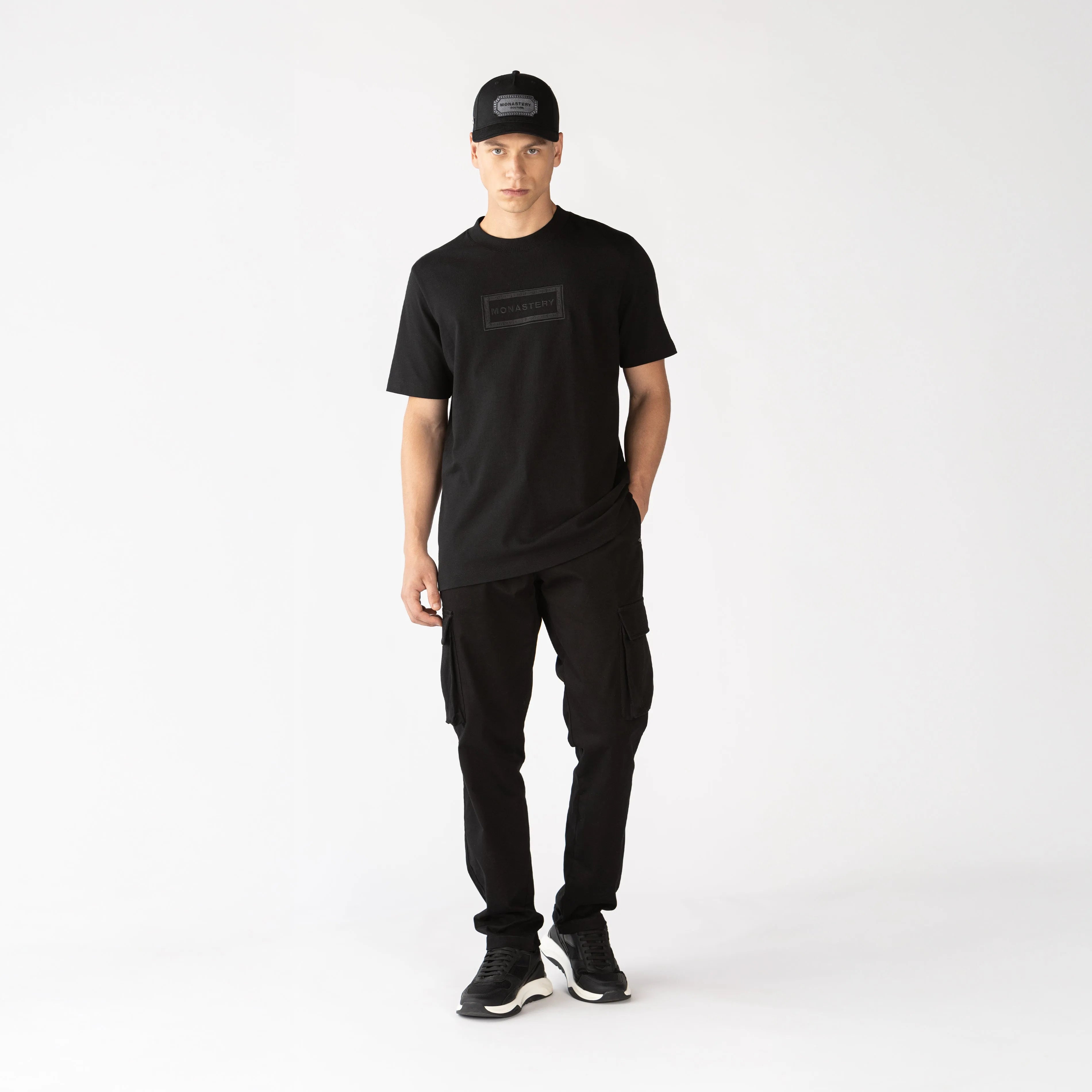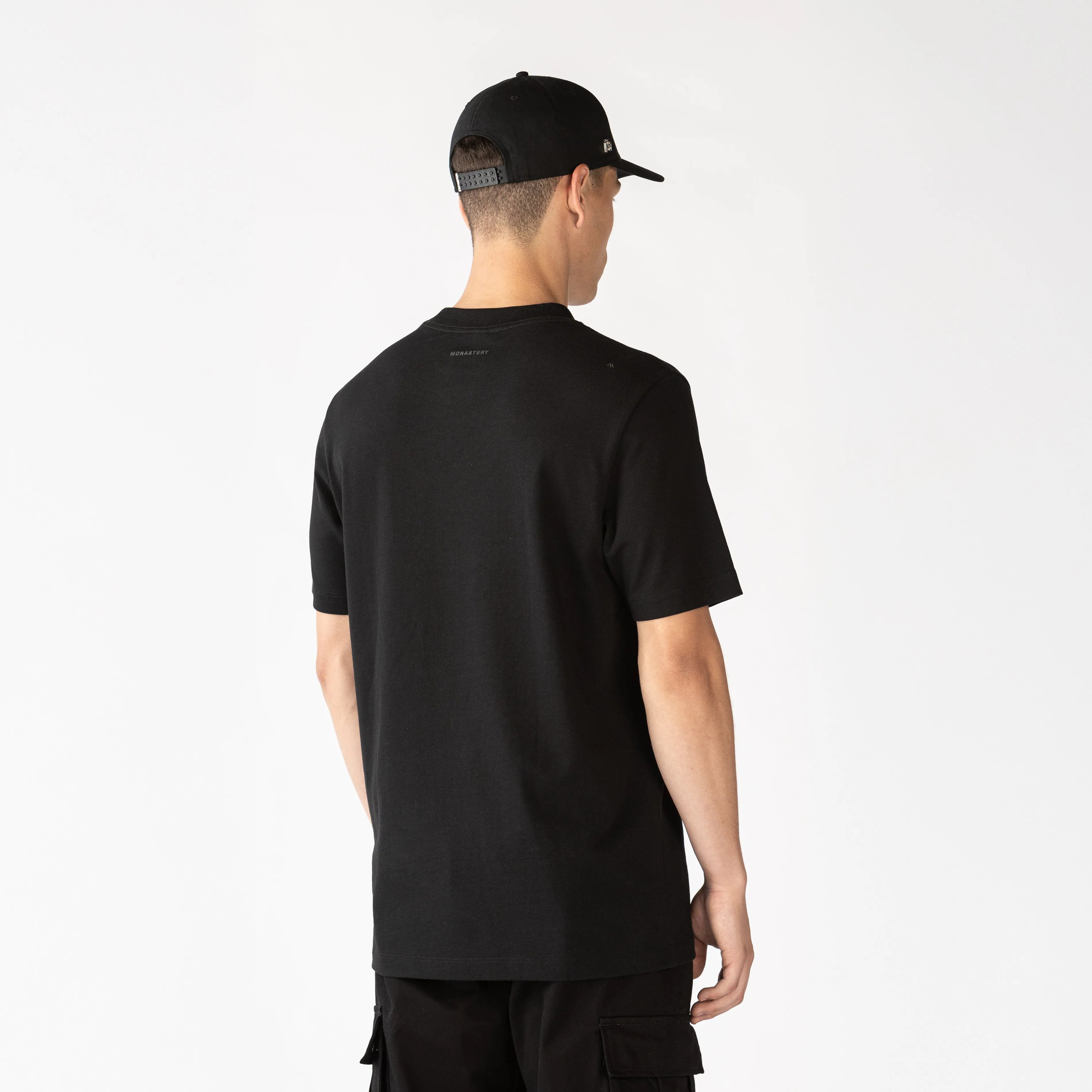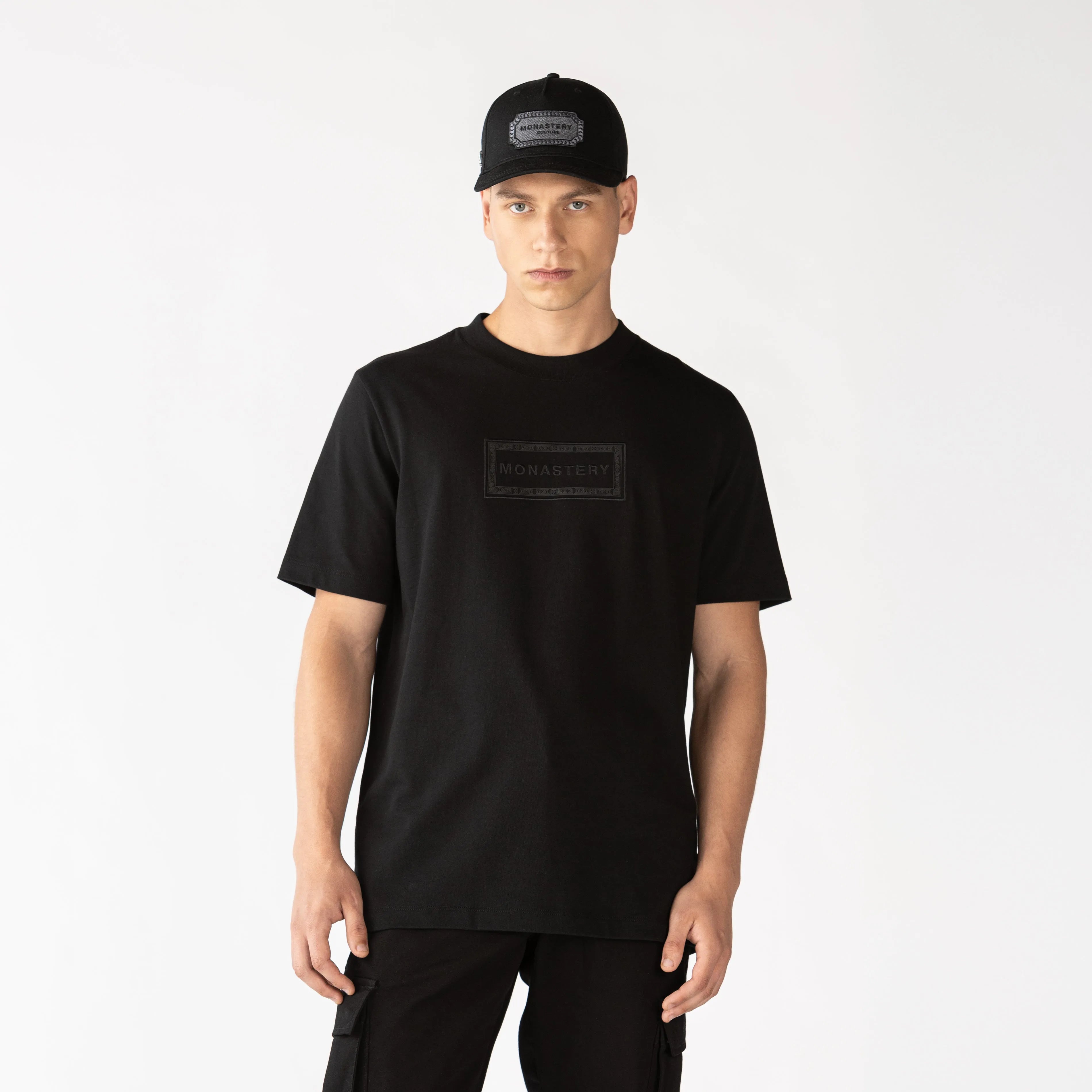 Confeccionada en algodón exclusivo para Monastery, esta Playera Tyrion negra de silueta regular se caracteriza por su cuello en rib de 3 cm, que proporciona un ajuste cómodo y elegante. En el frente, presenta un arte de cenefo con bordado plano y alta densidad, ofreciendo un diseño distintivo y moderno. La parte posterior cuenta con los logos insignia en un estampado clásico, añadiendo un toque de sofisticación. Perfecta para quienes buscan un estilo contemporáneo y de calidad, esta Playera se adapta a diversas ocasiones.