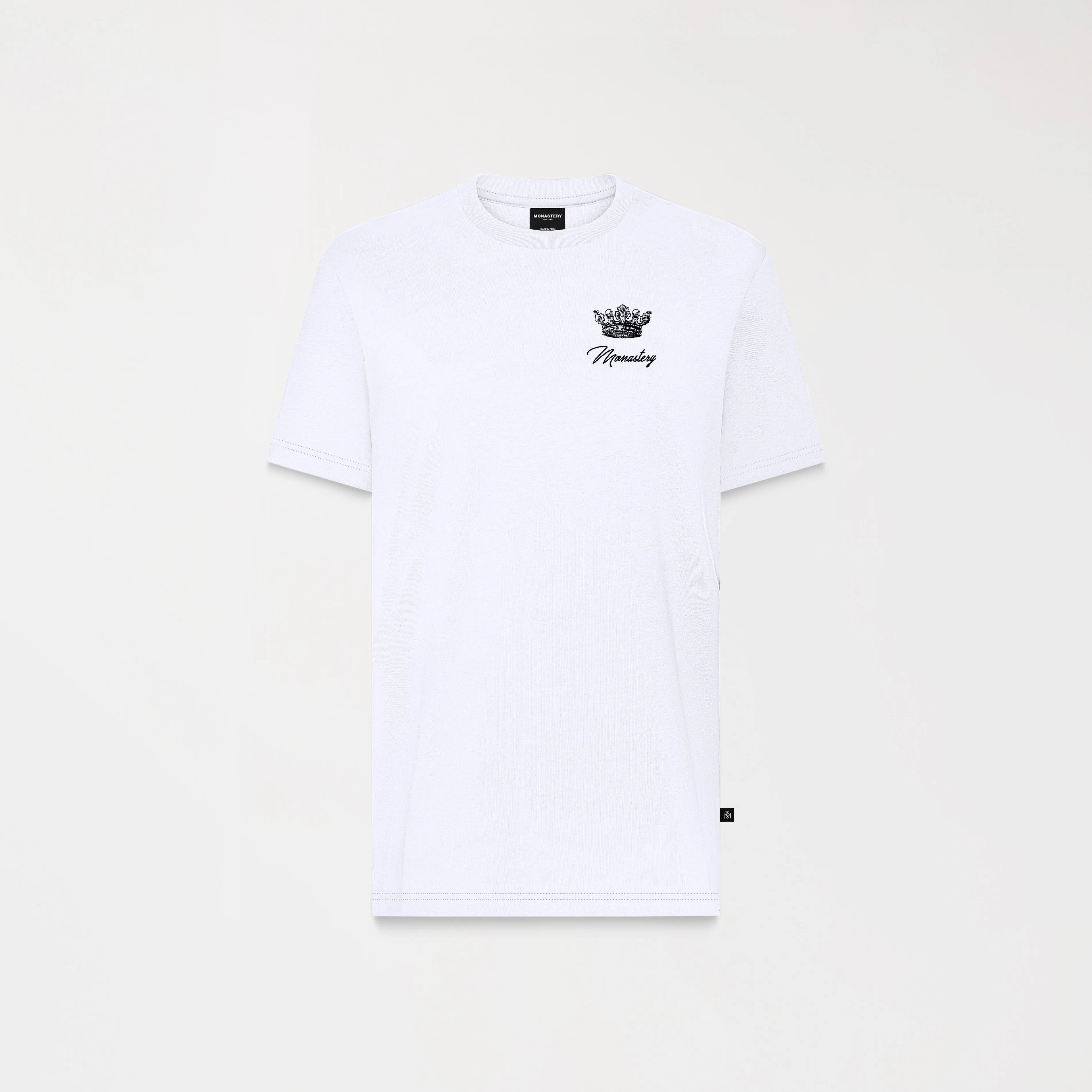 Playera para hombre en 100% algodón exclusivo para Monastery, elaborada en silueta regular con cuello de 2,5cm, presenta arte corona con logo Monastery en punto corazón bajo técnica de bordado plano y arte Monastery The king en espalda en técnica de bordado plano y alta densidad. Warsel es una prenda con un arte icónico renovado, haciendo este articulo fácilmente reconocible, muy versátil para combinar con tu vestuario.