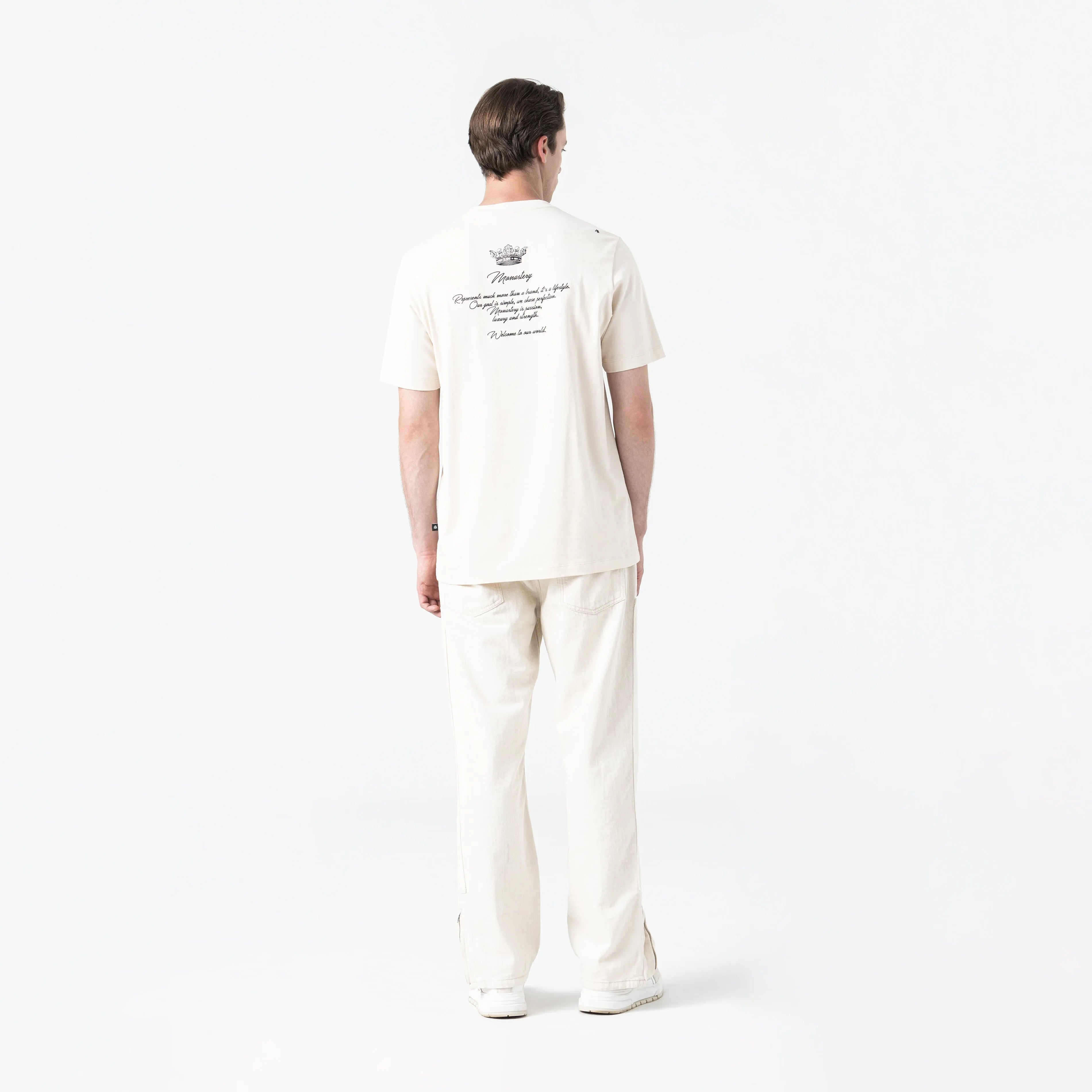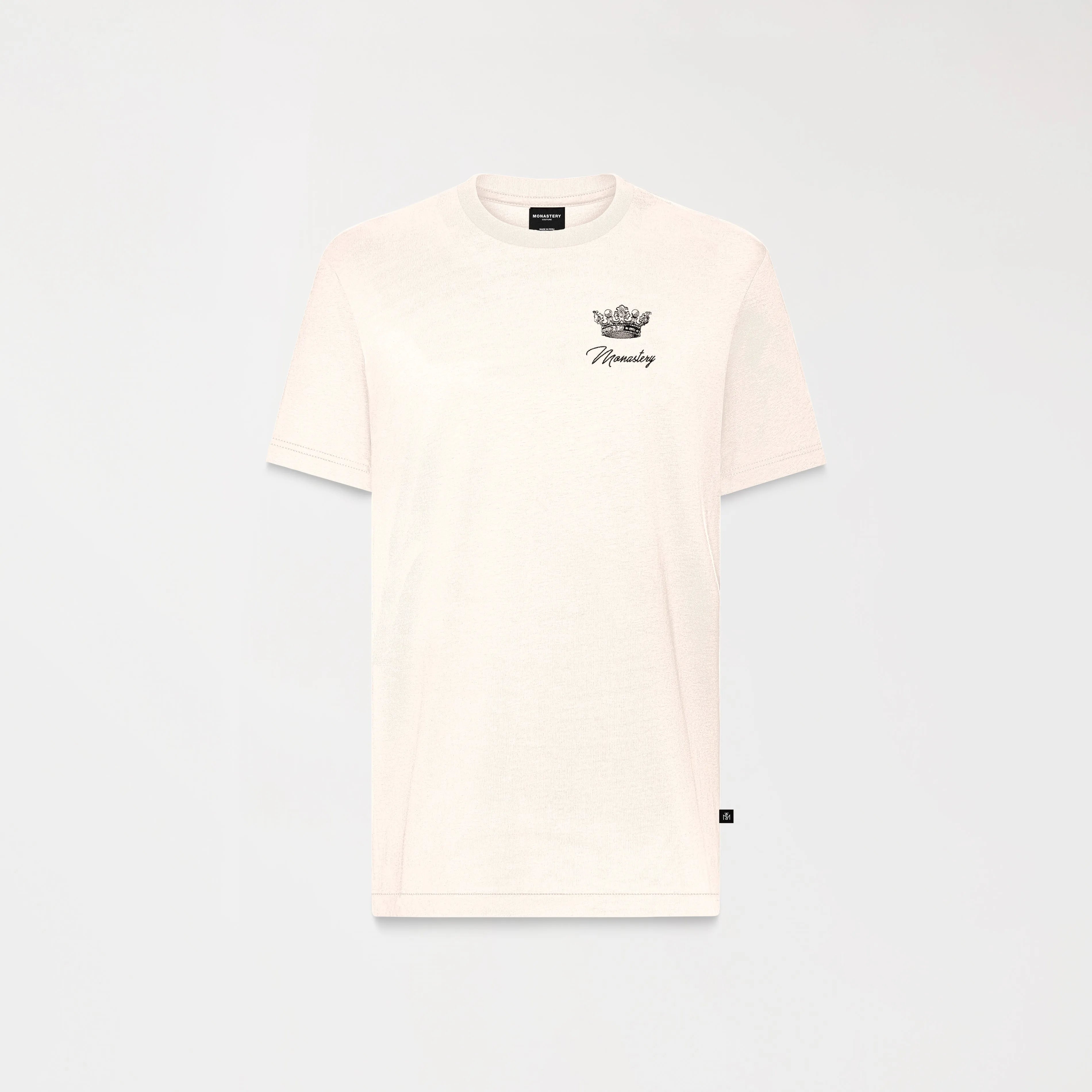 Playera para hombre en 100% algodón exclusivo para Monastery, elaborada en silueta regular con cuello de 2,5cm, presenta arte corona con logo Monastery en punto corazón bajo técnica de bordado plano y arte Monastery The king en espalda en técnica de bordado plano y alta densidad. Warsel es una prenda con un arte icónico renovado, haciendo este articulo fácilmente reconocible, muy versátil para combinar con tu vestuario.