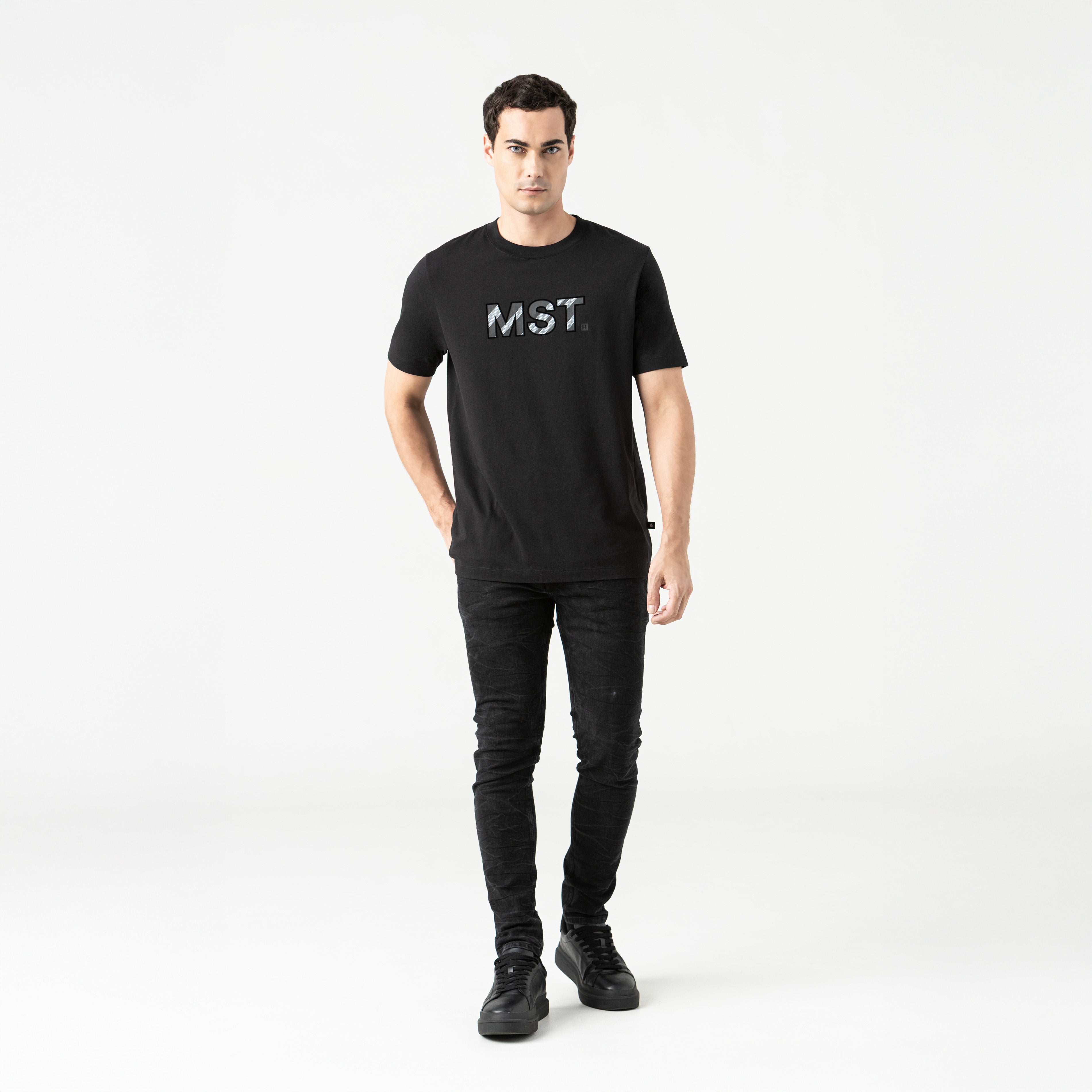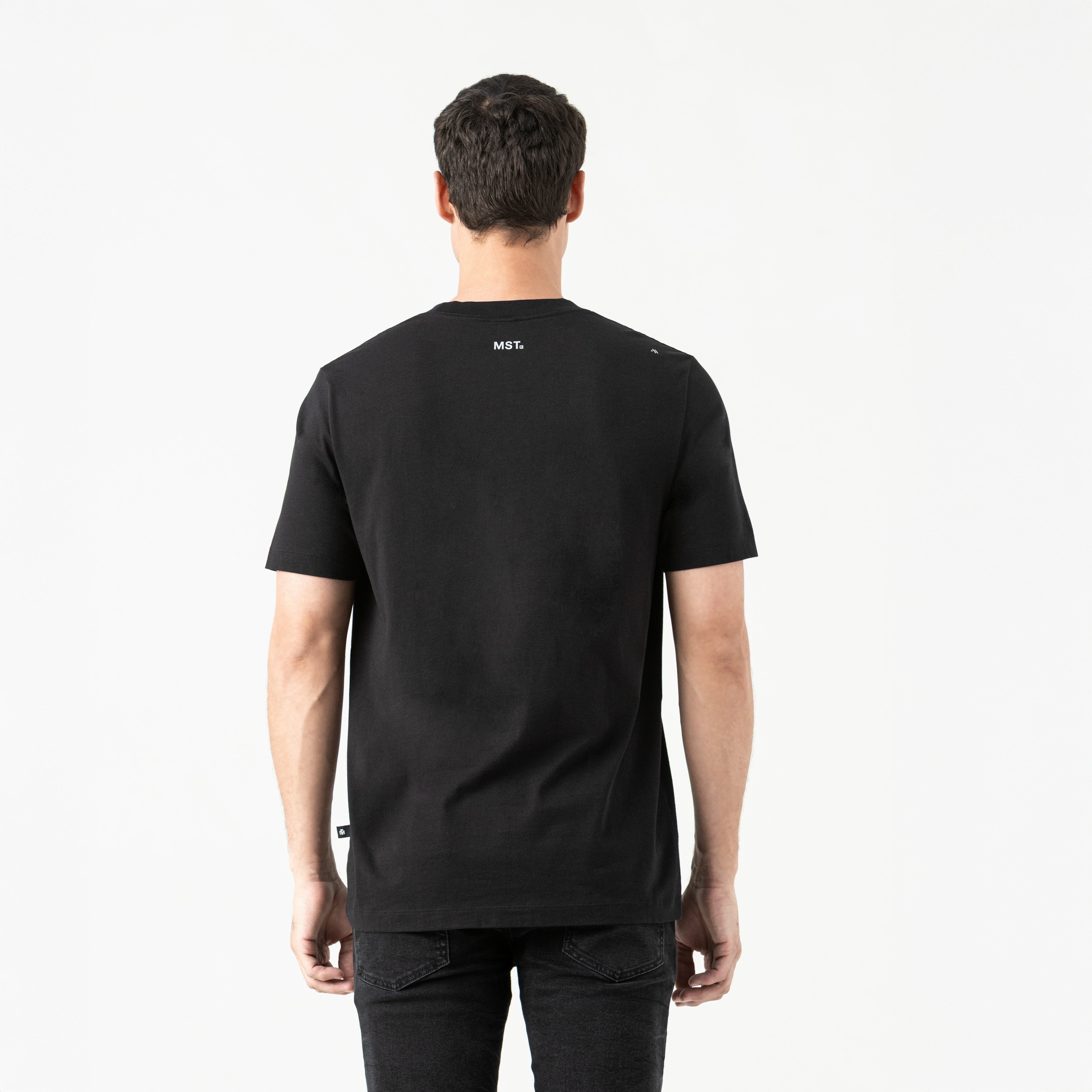 York es una t-shirt masculina confeccionada en algodón pima de la más alta calidad. Su silueta regular se equilibra con un tacto suave y fluido, mientras el cuello en rib de 2.5 cm aporta definición. El logo MST se presenta en técnicas flock y shimmer, generando textura y destellos sutiles tanto en el frente como en la espalda. Una pieza esencial que transforma lo cotidiano en sofisticación gráfica..